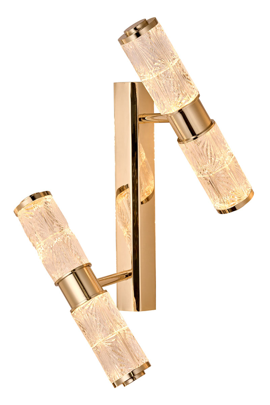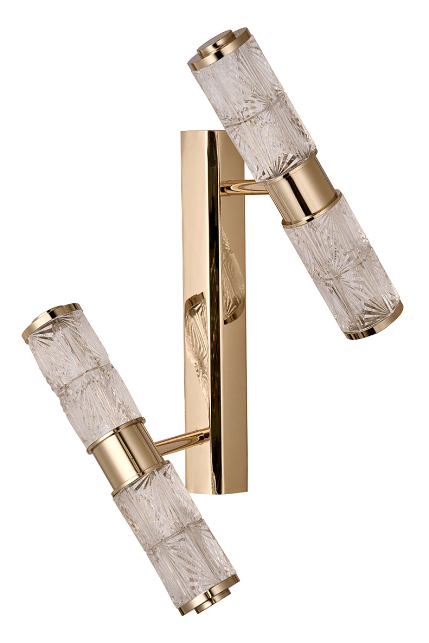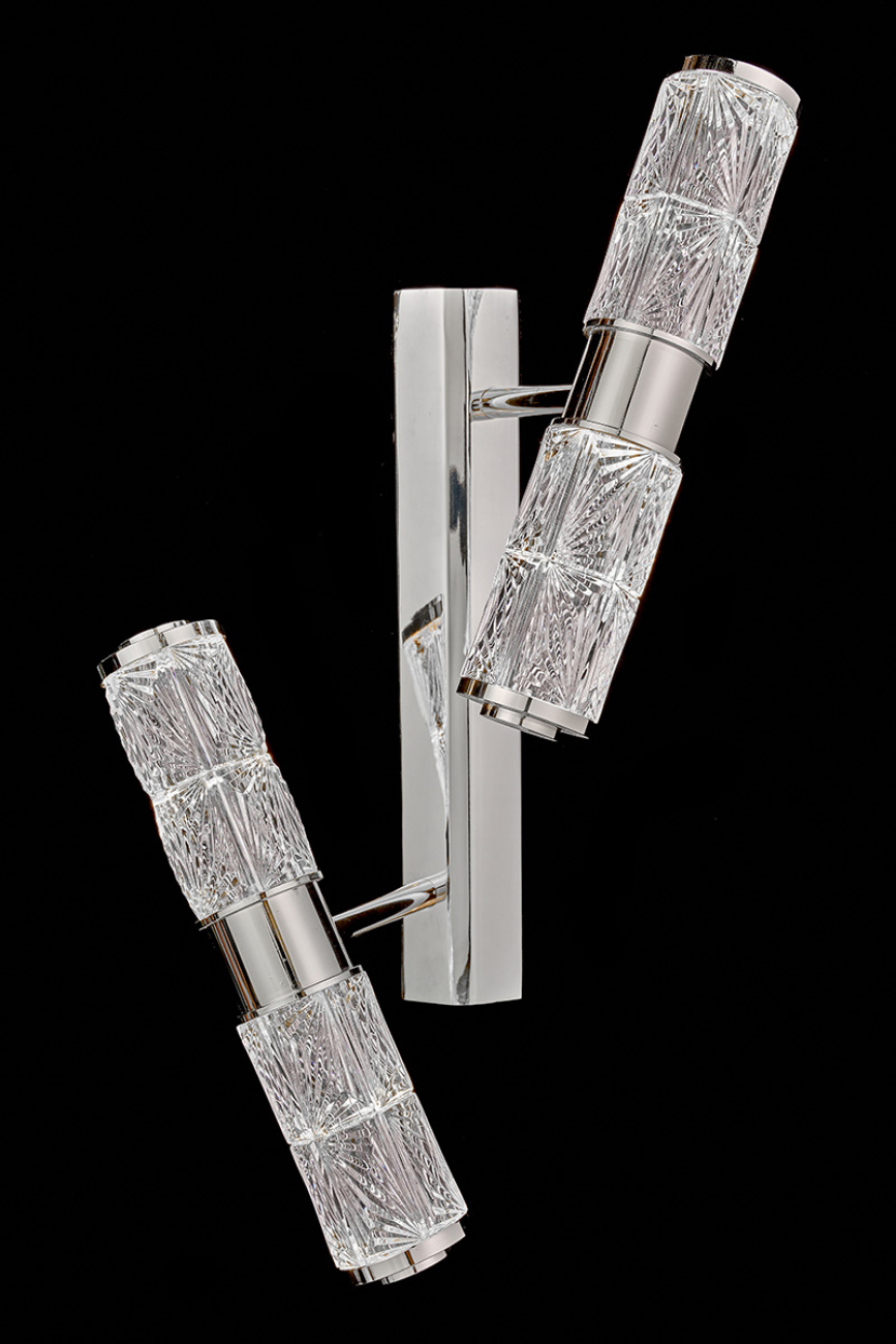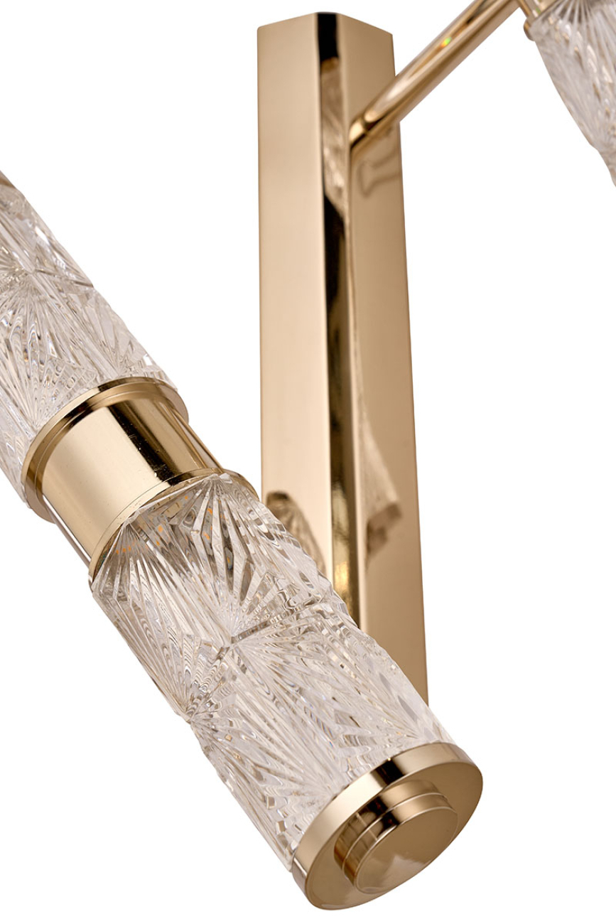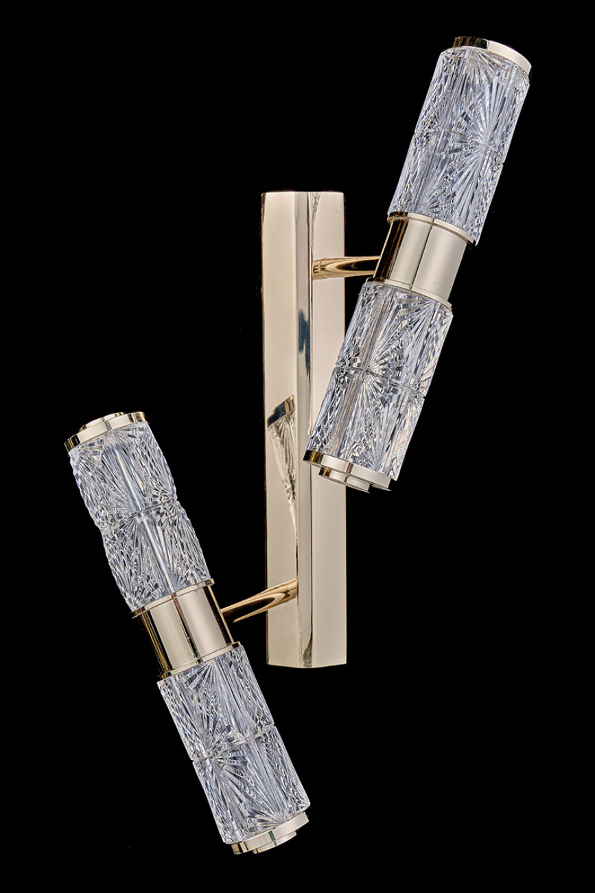 Геометрические мотивы и классика. Оригинальный дизайнерский микс, воплощенный в коллекции «Viviane». Элементы светильников в форме цилиндров выполнены из хрусталя с элегантным рисунком. Каждый из светящихся хрустальных цилиндров имеет индивидуальный угол поворота, а вместе они создают композицию, напоминающую движение космических объектов вокруг единого центра. Корпус светильников – из металла в цвете золото. Покрытие арматуры – 3-х слойная гальваника. Источники света – светодиоды высокого качества.