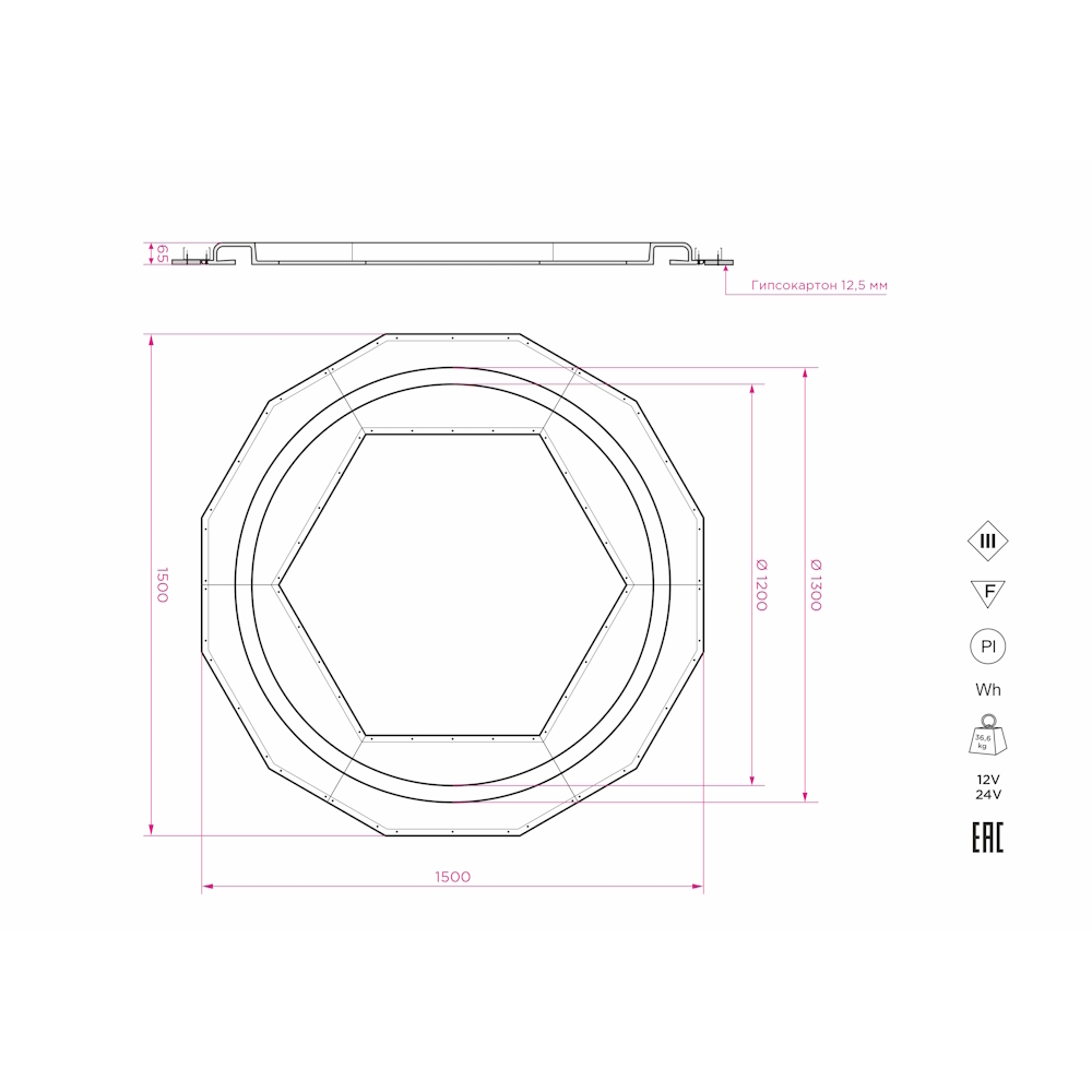 - Размер видимой части: Ø1300 мм