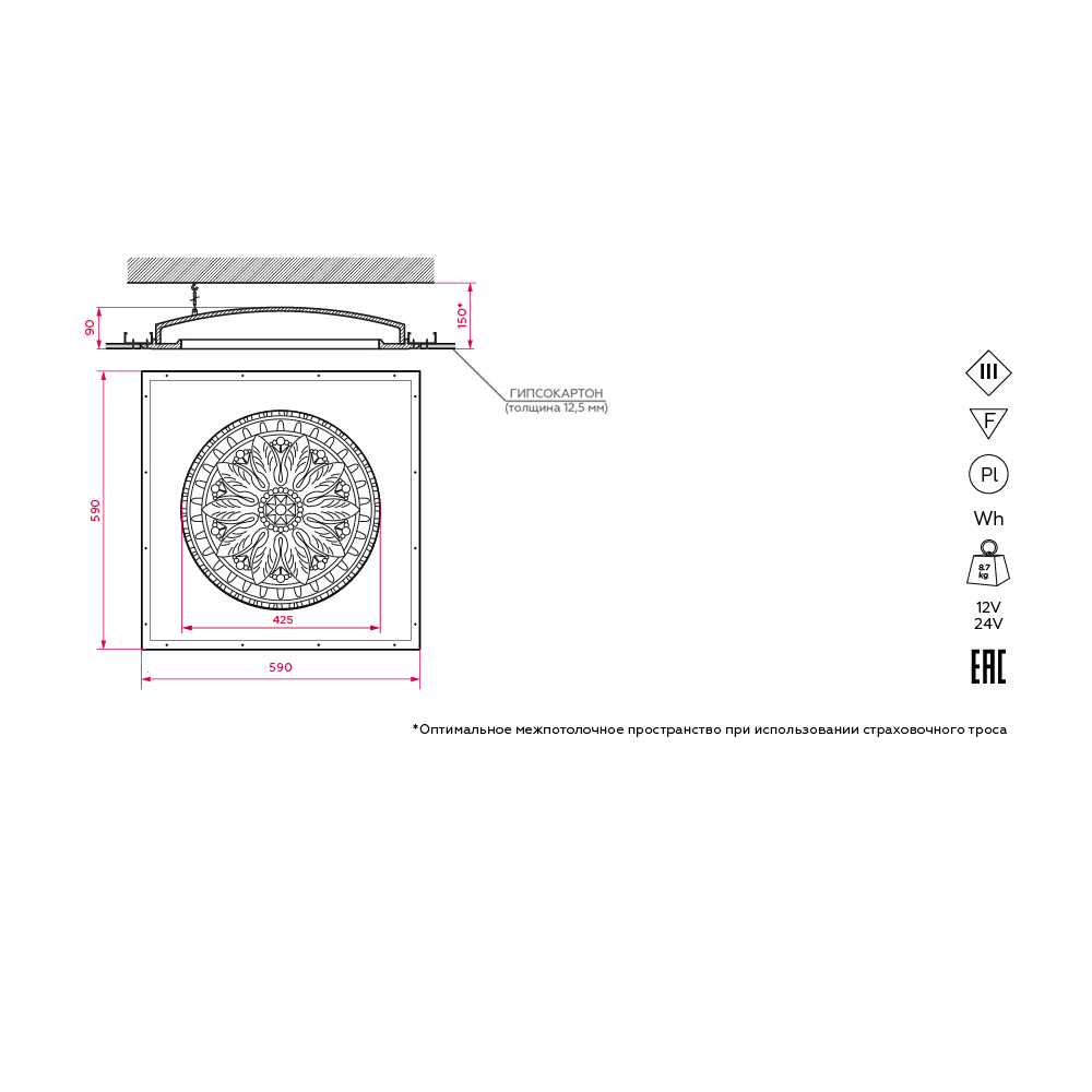 - Габариты (Д/Ш/В): 590/590/90 мм