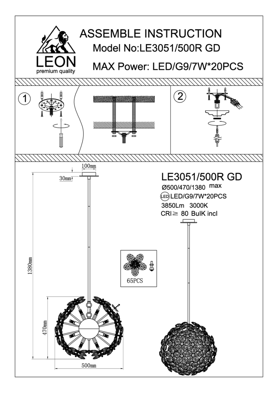 | Материал плафона: | Высококачественный хрусталь |