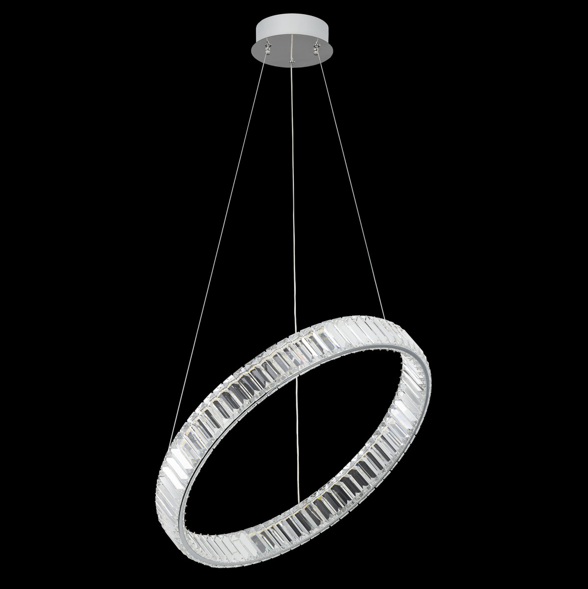 Хрустальная светодиодная люстра Citilux Чезаре CL338161 истинное произведение искусства, которое не оставит равнодушными даже самых требовательных ценителей красоты. Основание круглой формы, цвет хром. Хрустальное кольцо на металлическом каркасе, подвешено на элегантных тросиках и словно парит в воздухе. Хрустальные элементы являются воплощением кристальной прозрачности и современной огранки, они играют сияющими отблесками света и создают неповторимую атмосферу роскоши и элегантности.