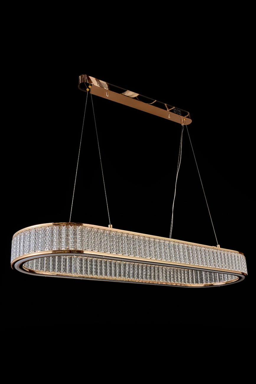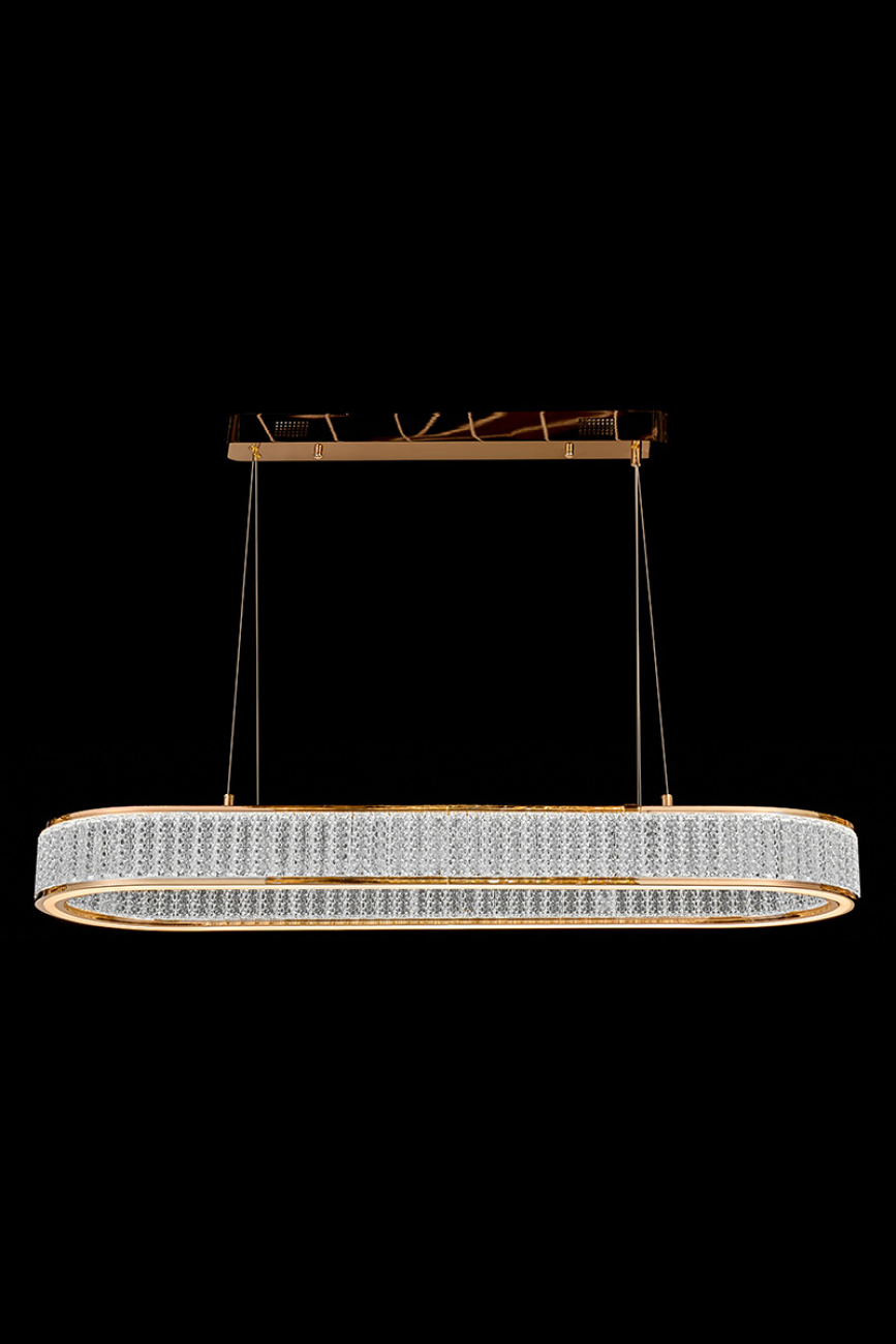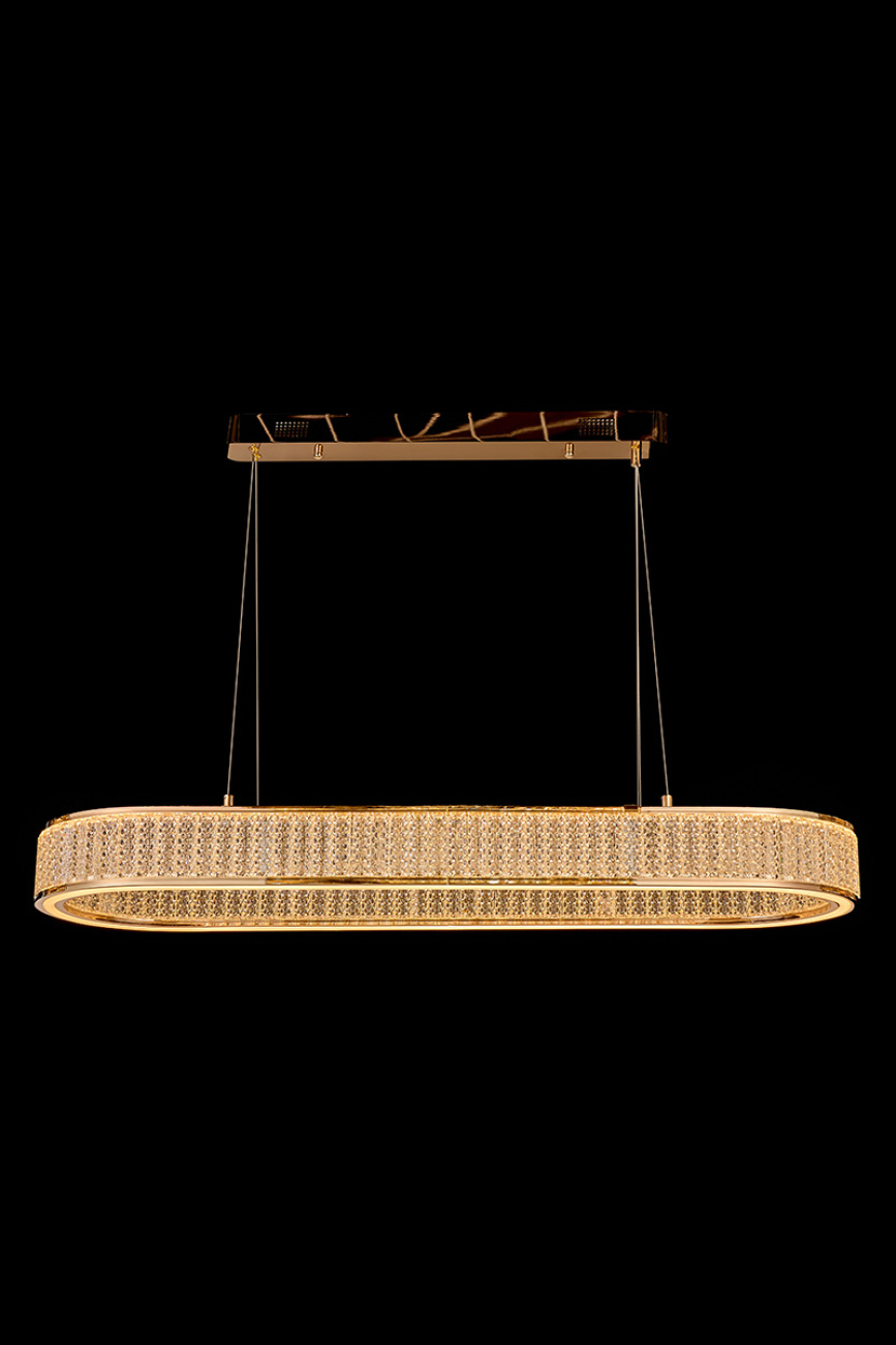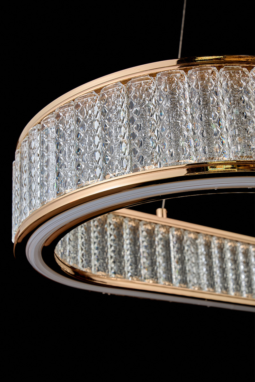 Впечатляющий дуэт классики и современности. Вдохновляющие рифмы хрусталя и металла. Объединяющая идея коллекции – окружности и эллипсы. Плафоны светильников выполнены из хрусталя с красивой огранкой в виде крупных прямоугольников. Плафоны как будто парят в воздухе, как необычные космические светила. Корпус светильников выполнен из металла в цвете золото. Плафоны светильников выполнены из хрусталя. Это материал высокого качества, не уступающий кристаллам Swarovski в своей красоте и способности создавать восхитительные переливы. Покрытие арматуры – 3-х слойная гальваника. Источники света – светодиоды высокого качества.