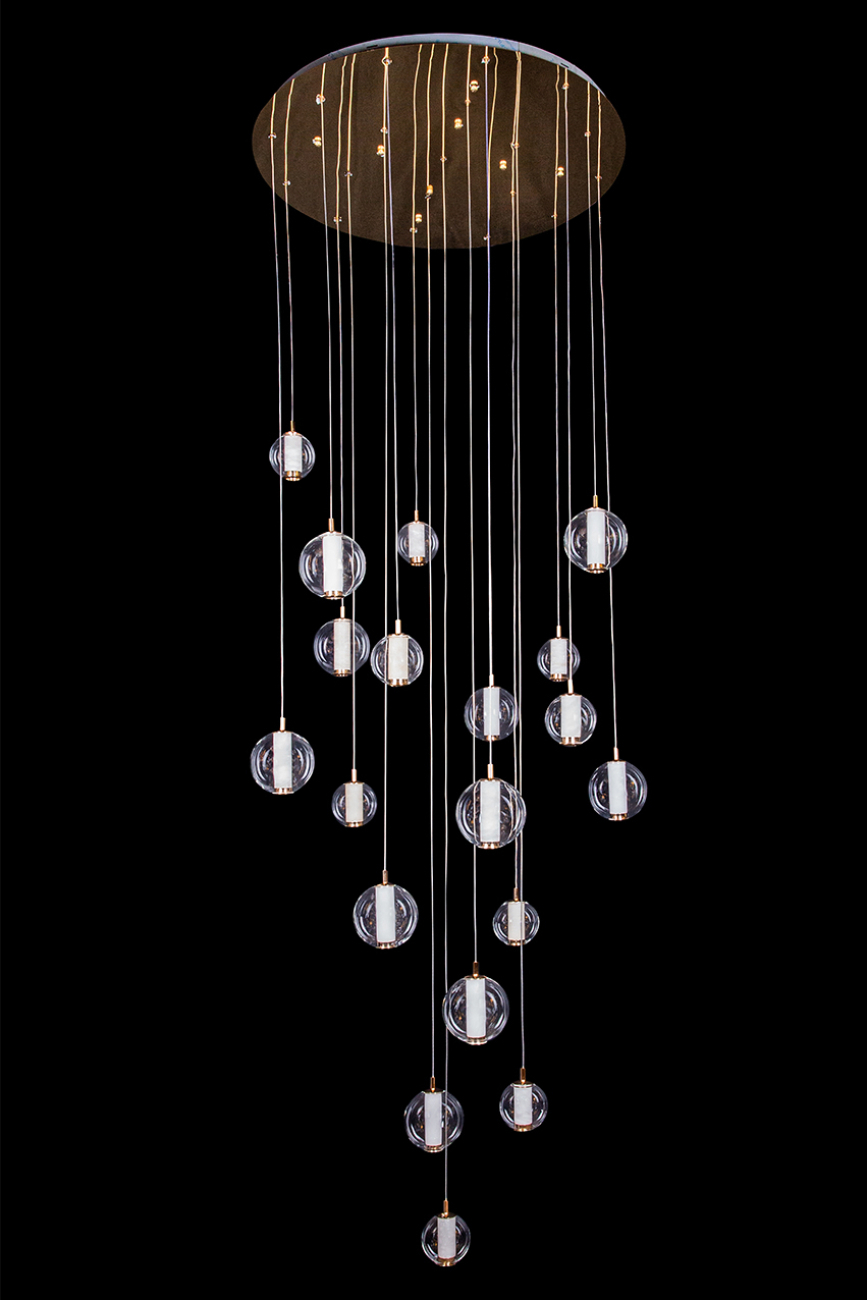 Названная в честь самой яркой звезды из созвездия Лиры, эта коллекция пленяет нежностью дизайна. Аврора – утренняя звезда. Яркая и прекрасная, как молодая заря. Элементы светильников выполнены в виде совершенных полупрозрачных сфер из стекла и испанского мрамора. Сочетание материалов создает гармоничную игру фактур и красивое отражение света. Корпус светильников – из металла в цвете хром. Источники света – светодиоды высокого качества. Покрытие арматуры – 3-х слойная гальваника.