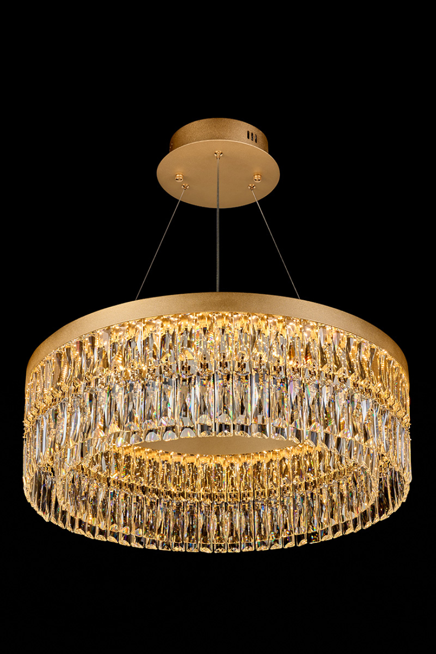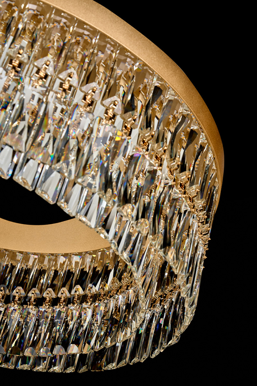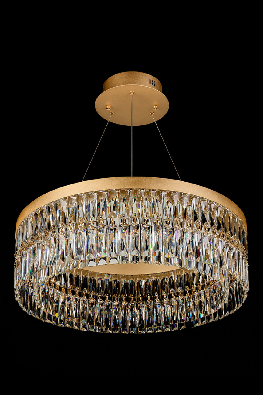 Изысканные хрустальные светильники Milana воплощают элегантность и роскошь. Плафоны люстр овальной и округлой форм обрамлены рядом длинных хрустальных подвесок, которые каскадом спускаются вниз, создавая эффект мягкого перелива света. Золотистая рамка подчеркивает богатство и утонченность дизайна, добавляя теплоту и блеск. Подвешенные на тонких тросах, люстры кажутся парящими в воздухе, наполняя пространство атмосферой величественности и гармонии. Плафоны светильников выполнены из хрусталя. Это материал высокого качества, не уступающий кристаллам Swarovski в своей красоте и способности создавать восхитительные переливы. Покрытие арматуры – 3-х слойная гальваника. Источники света – светодиоды высокого качества. Светильники Milana идеально подойдут для просторных помещений, станут центральными акцентами современных дизайнерских интерьеров.