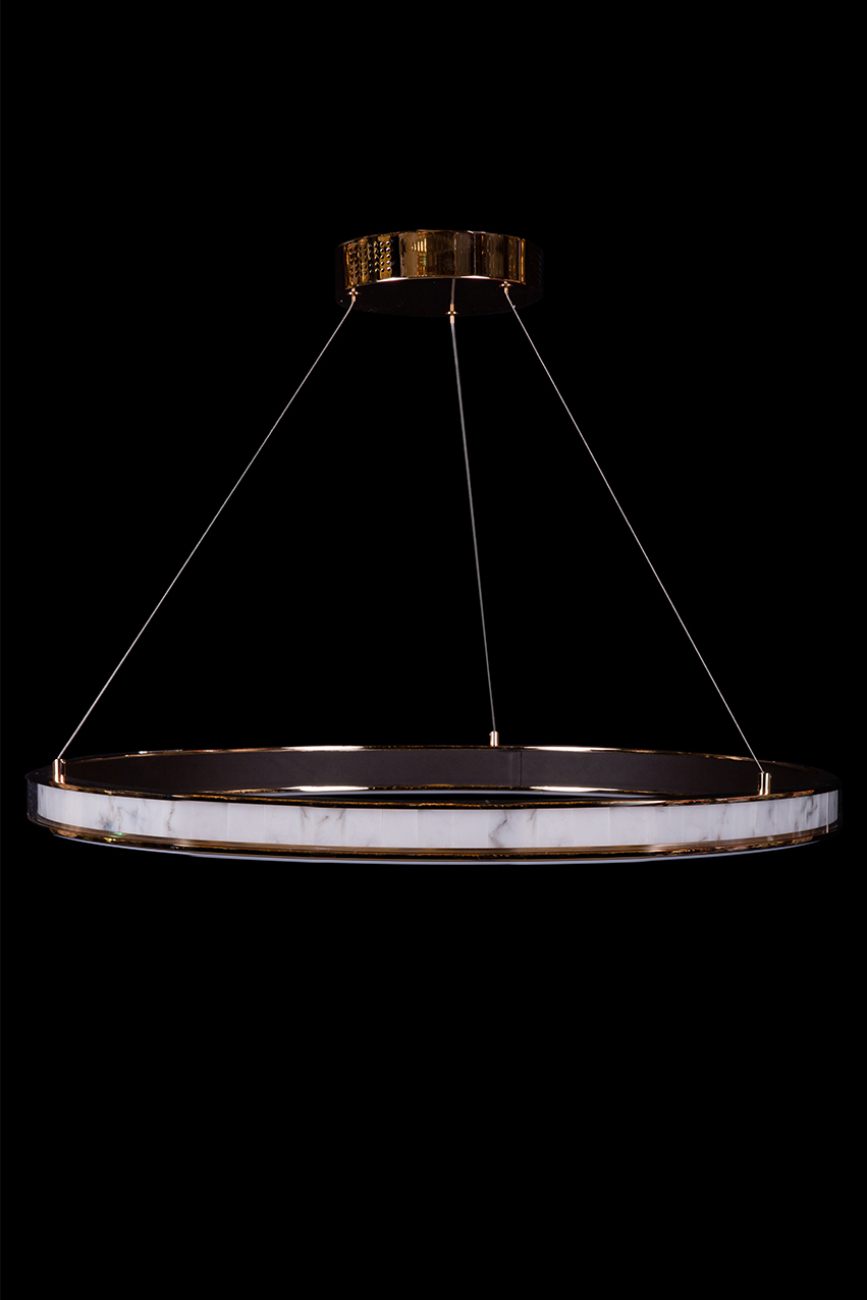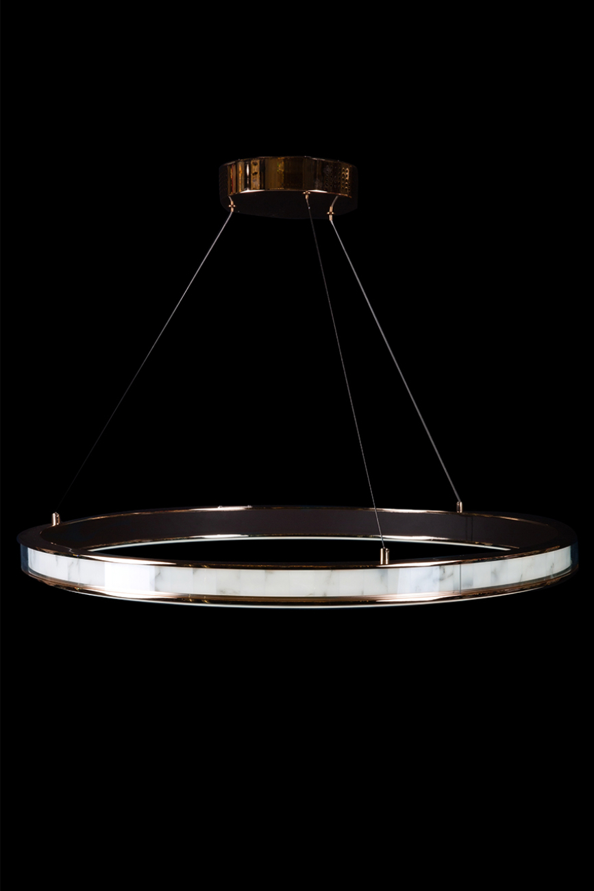 Коллекция представлена подвесными люстрами разных форм и размеров, а также подвесными и настенными светильниками.