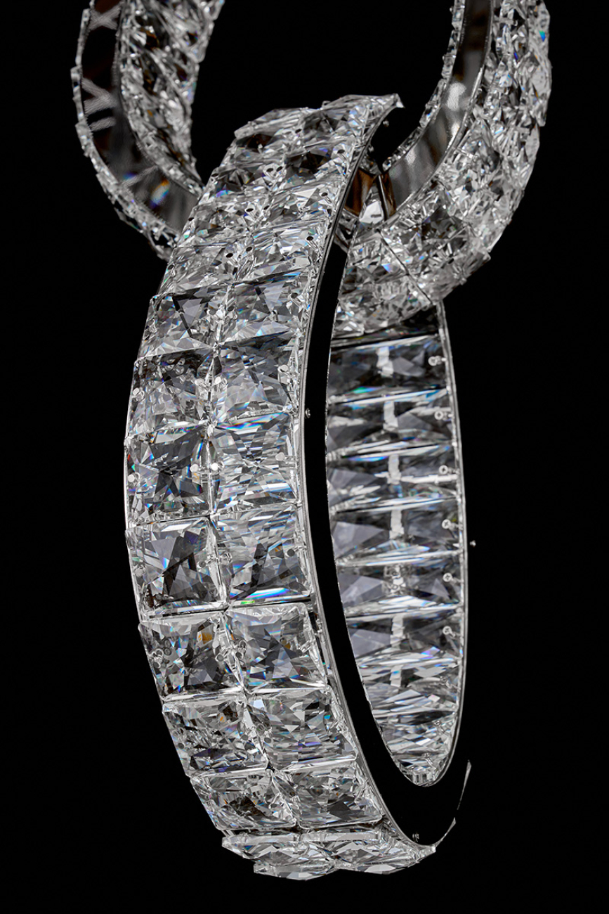 Плафоны светильников выполнены из хрусталя. Это материал высокого качества, не уступающий кристаллам Swarovski в своей красоте и способности создавать восхитительные переливы. Покрытие арматуры – 3-х слойная гальваника. Источники света – светодиоды высокого качества.