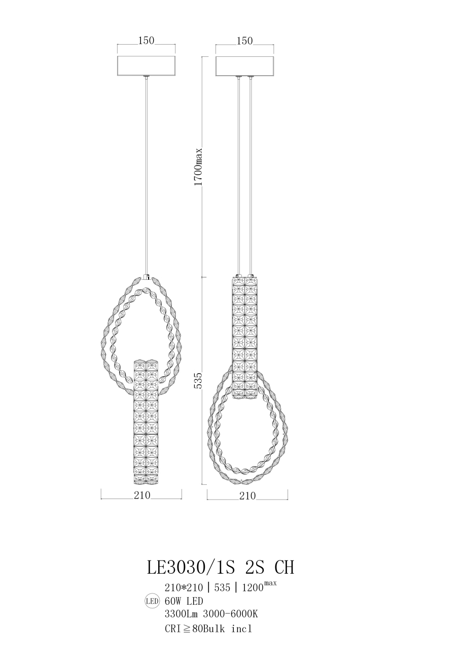 Подвесной светильник LED 60W 3000К-6000К LE3030/1S 2S CH хром Veronique Leon