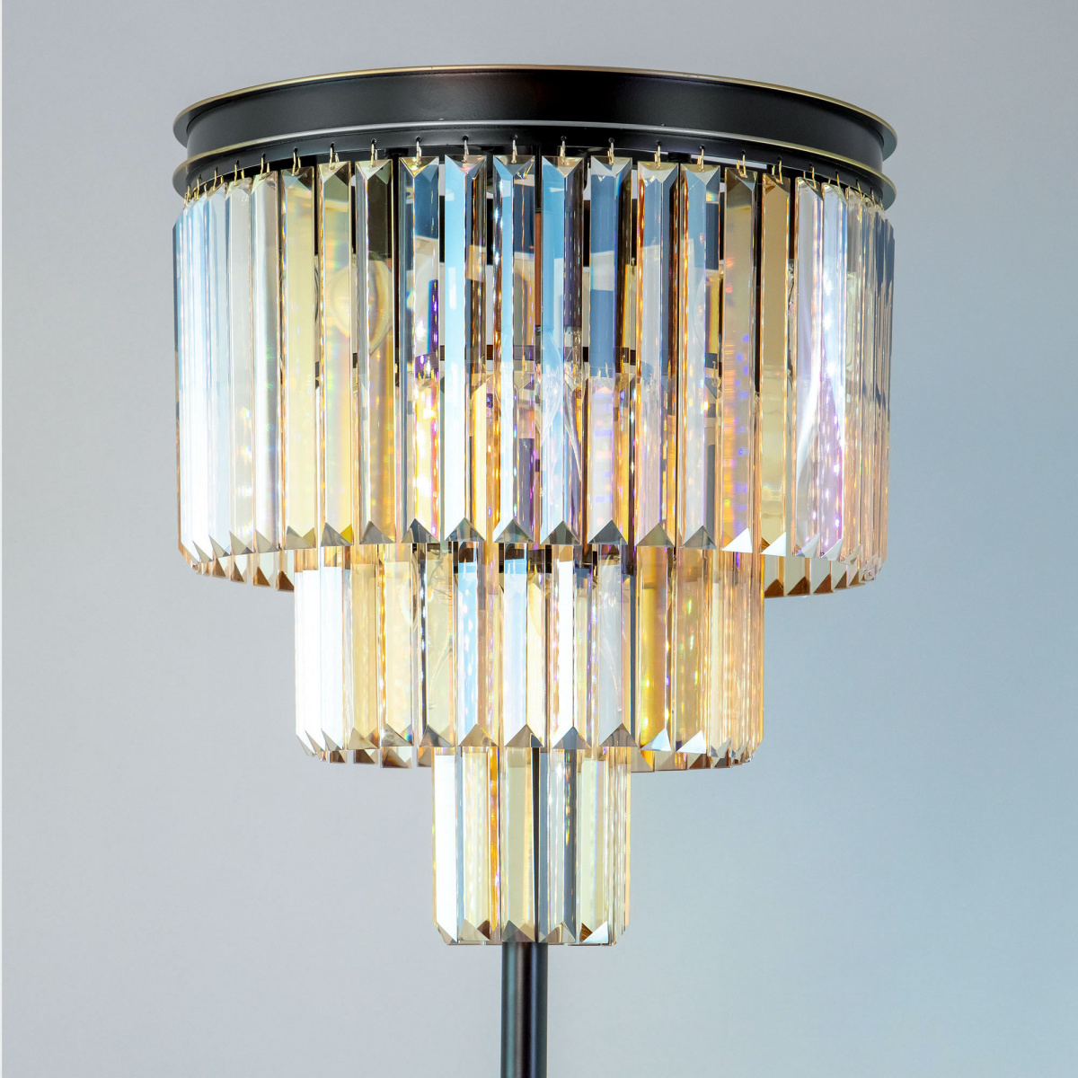 Шикарный торшер Citilux Мартин CL332992 с хрустальными подвесками модного оттенка шампань, расположенными каскадом в три ряда. Круглая верхняя часть модели и стойка выполнена из металла солидной толщины, окрашенного в темный коричневый цвет. Основание из натурального камня черного цвета. Высота изделия 1,7 метра. В торшере рекордные 9 ламп с цоколем Е14 и максимальной мощностью для ламп накаливания 60Вт. Светодиодные лампы можно использовать более яркие. Светильник великолепно выглядит в интерьере как самостоятельно, так и в составе коллекции Ситилюкс Мартин CL332. Отлично подойдет в классические и современные интерьеры, в том числе оформленные в стиле лофт.