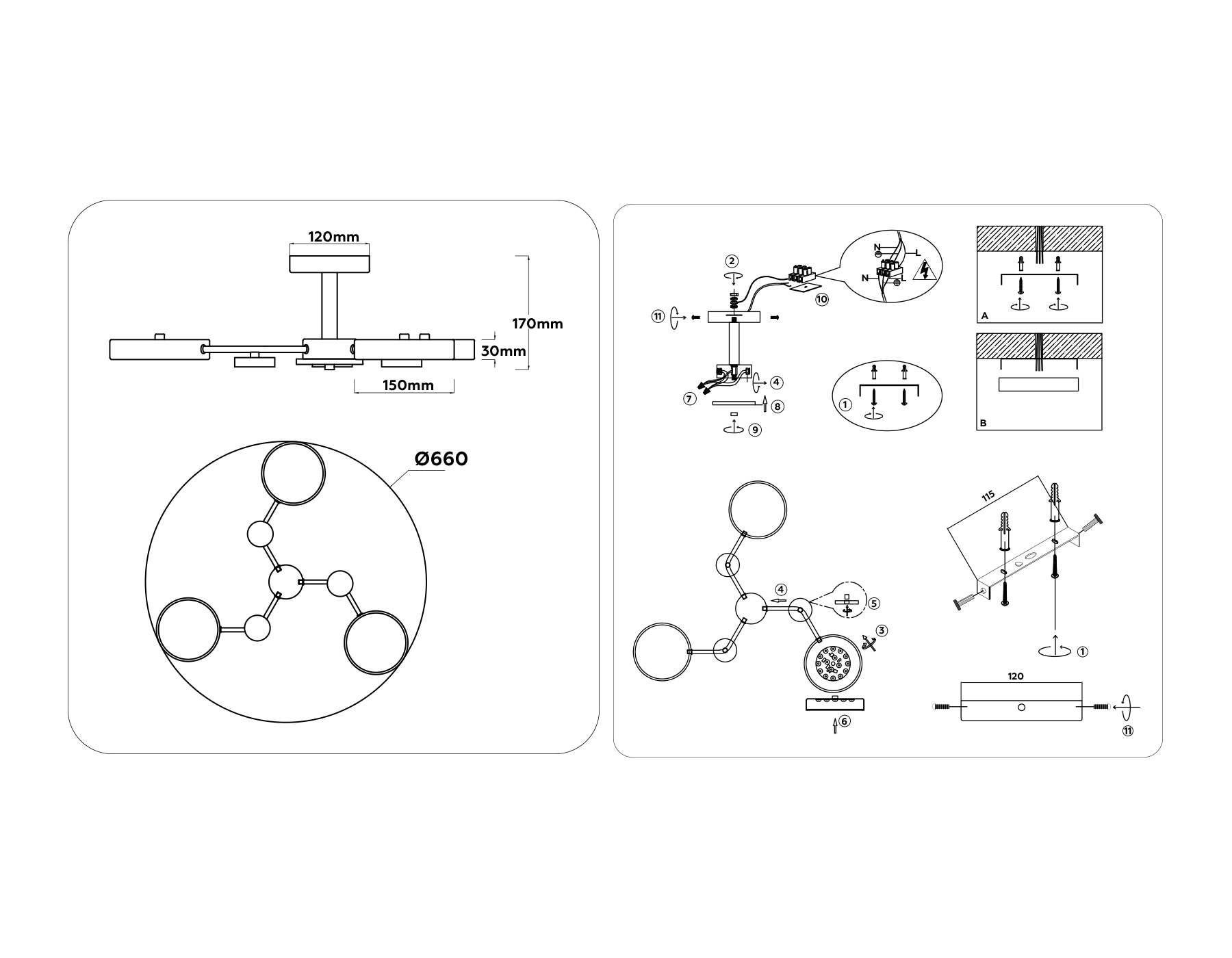 | Место установки | На потолок |