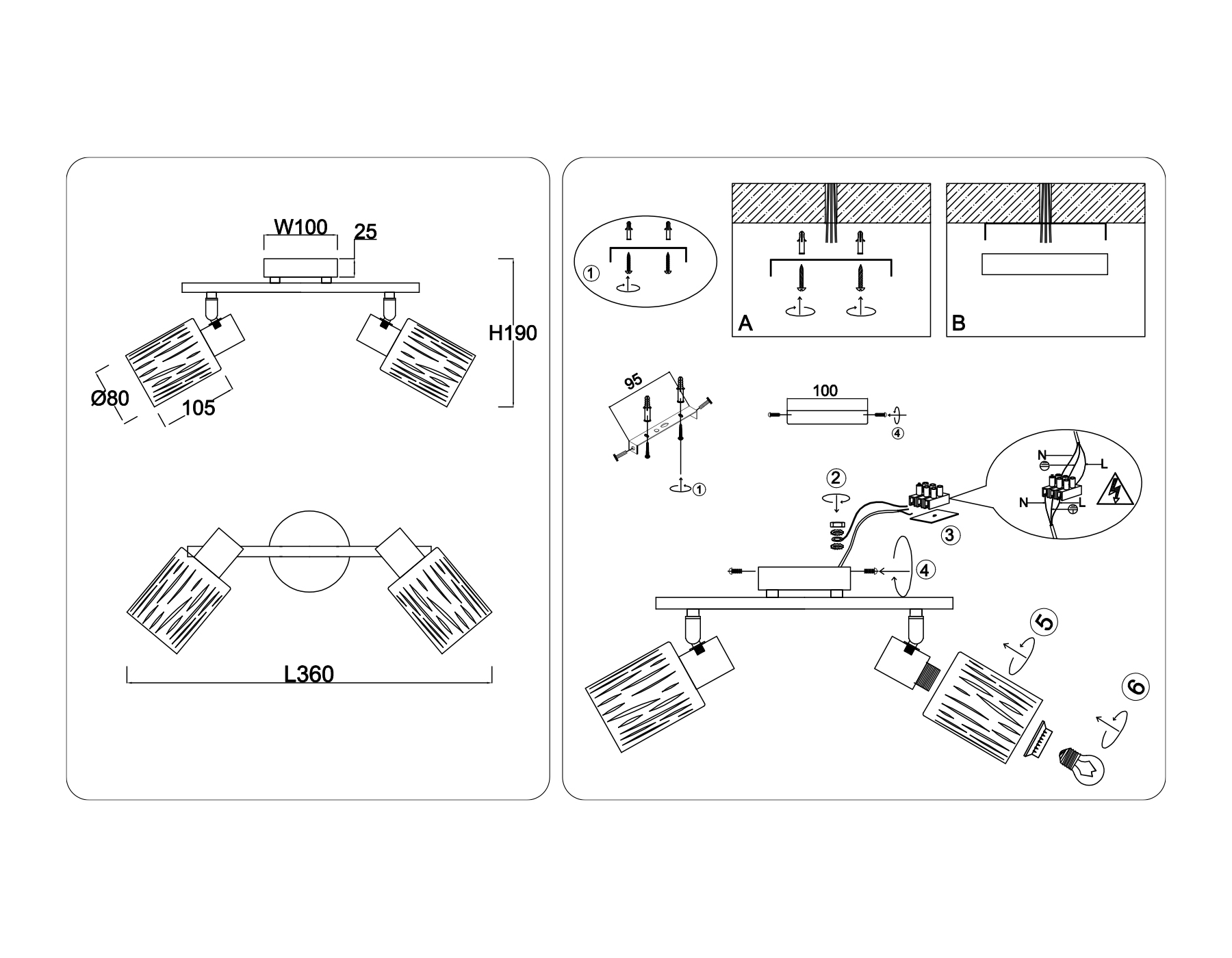 | Направление плафонов | Поворотное |