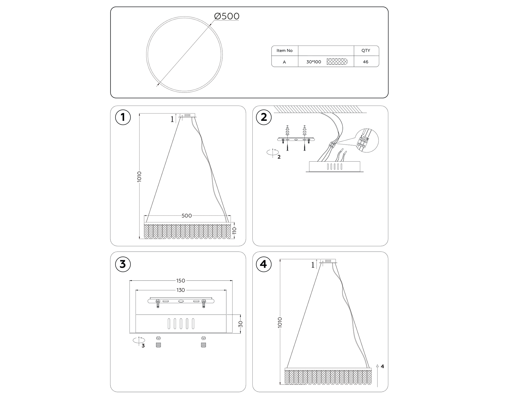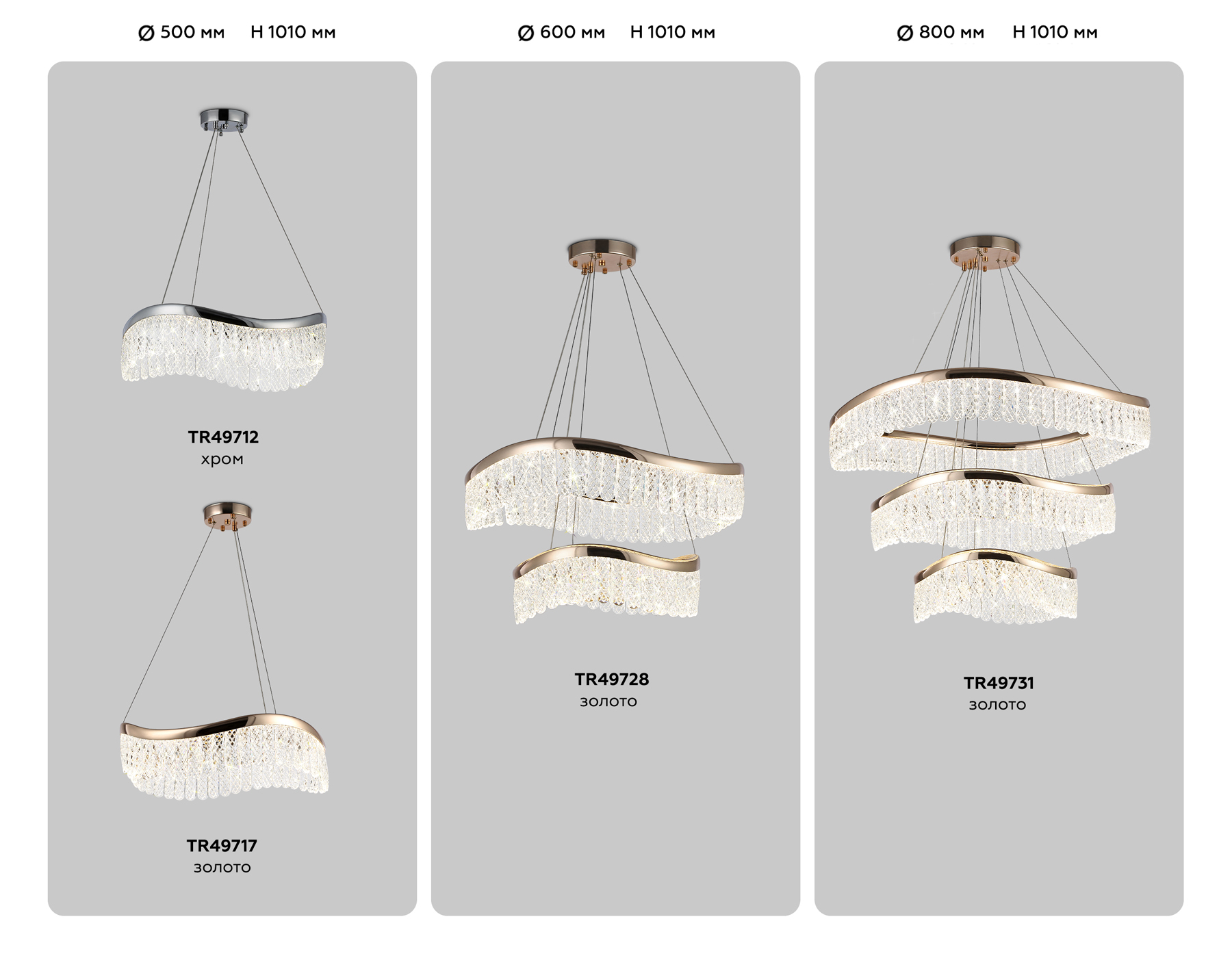 - Высота люстры с тросом, мм: 1010
