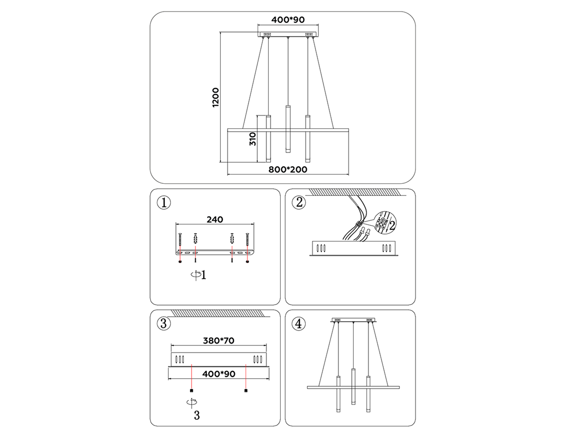 Высота люстры с тросом, мм: 1200