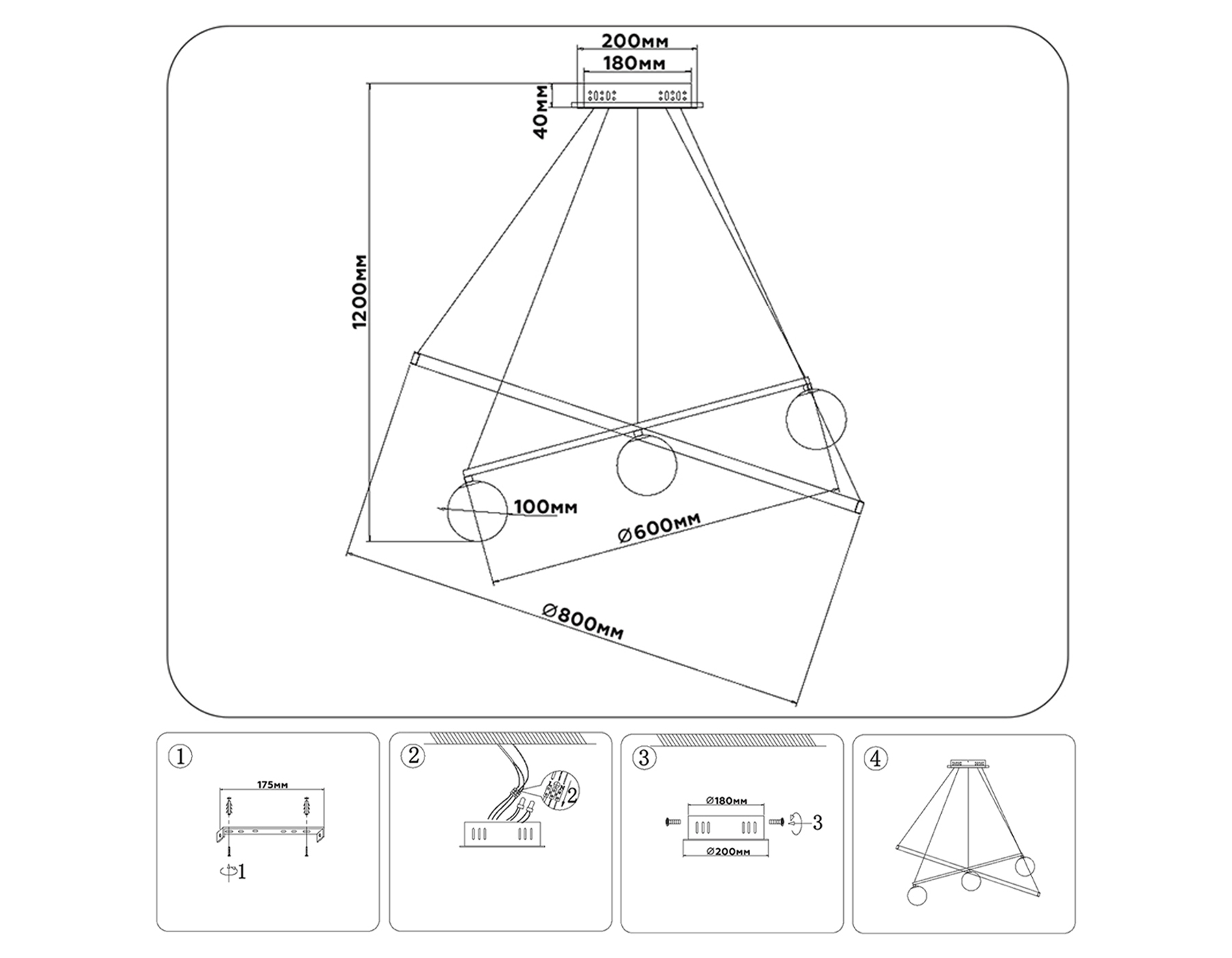 - Высота люстры с тросом, мм: 1200