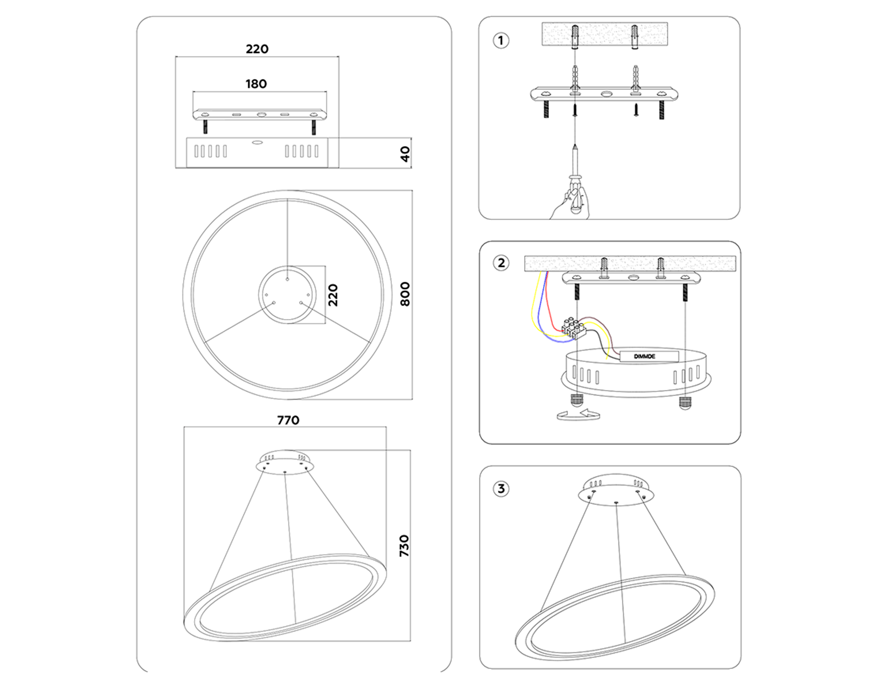 - Высота люстры с тросом, мм: 730