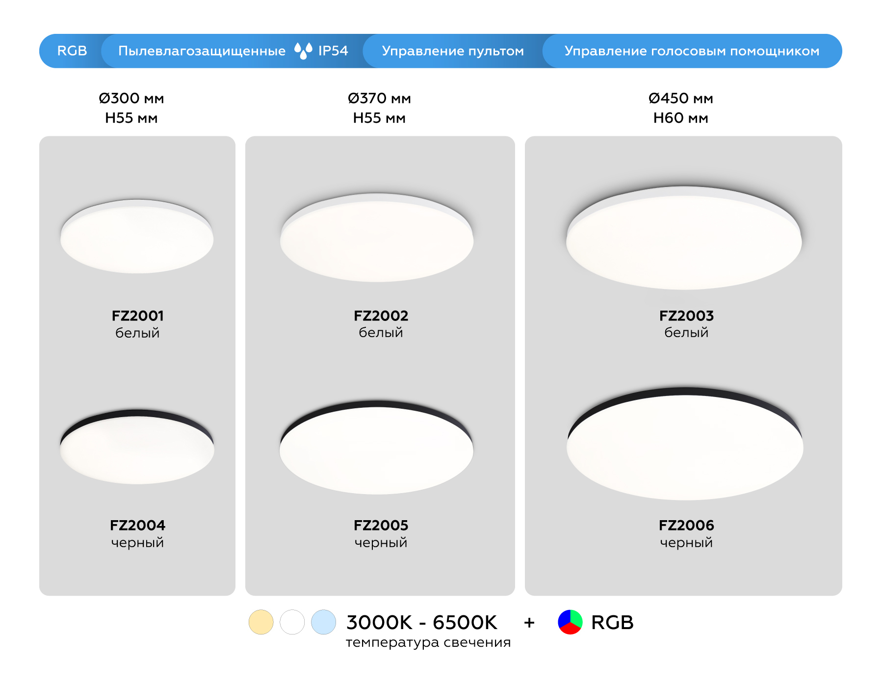 Цветовая температура, К: 3000-6500+RGB
