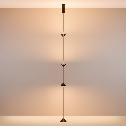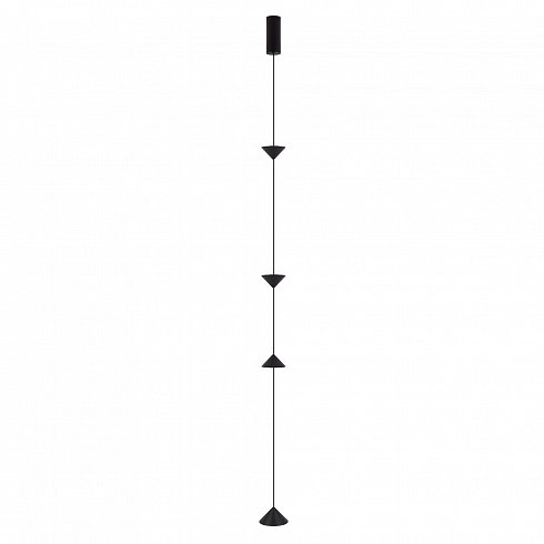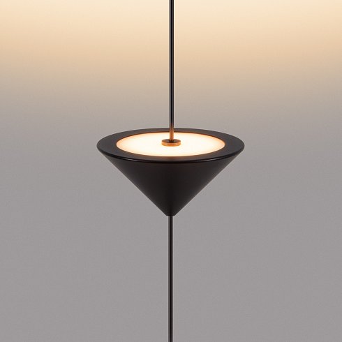 Декоративный накладной подвесной светильник. Мощность 12 Вт, св. поток 370 лм, 28 лм/Вт, теплый 2700 K, CRI>90, угол 110°, напряжение питания 230 В. Черный фигурный корпус из алюминия, экран PC, степень защиты IP20. Размер светоизлучающих модулей: Ø 100x55 мм; размер основания: Ø120*60 мм. Максимальная длина подвесной линии: 3800 мм (регулируется). Монтаж накладной, потолочная чаша: Ø60х150 мм. Драйвер 24-42 В, 300мА, пульсация<0,3. Совместим со встраиваемыми чашами 046018, 046020 (приобретаются отдельно).