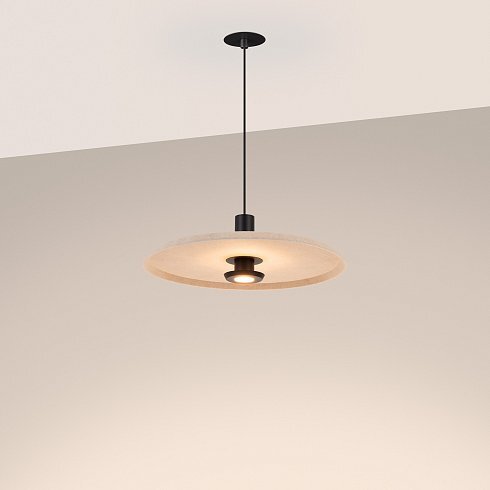 Подвесной светильник. Мощность 12 Вт, св. поток 768 лм, 64 лм/Вт, теплый 3000 K, CRI>94, угол 36°, напряжение питания 230 В. Бежевый фигурный плафон из переработанного фетра с кофейной внутренней поверхностью, линза-рассеиватель из PMMA, степень защиты IP20. Размер: диаметр 450 мм, высота 145 мм. Монтаж подвесной, длина подвеса 2000 мм, регулируемая. В комплекте 2 вида чаш. Габариты чаши (встраиваемая) Ø80 х 23 мм, врезное отверстие Ø60 мм. Габариты чаши (накладная) Ø120 x 35 мм. Драйвер 59В, 300 мА, пульсация <1%. Управление по TRIAC.