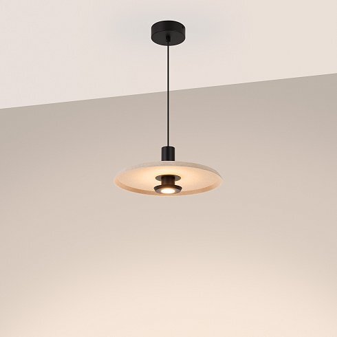 Подвесной светильник. Мощность 12 Вт, св. поток 708 лм, 59 лм/Вт, теплый 3000 K, CRI>94, угол 36°, напряжение питания 230 В. Бежевый фигурный корпус из переработанного фетра с бежевой внутренней поверхностью, линза-рассеиватель из PMMA, степень защиты IP20. Размер: диаметр 350 мм, высота 145 мм. Монтаж подвесной, длина подвеса 2000 мм, регулируемая. В комплекте 2 вида чаш. Габариты чаши (встраиваемая) Ø80 х 23 мм, врезное отверстие Ø60 мм. Габариты чаши (накладная) Ø120 x 35 мм. Драйвер 59 В, 300 мА, пульсация <1%. Управление по TRIAC.