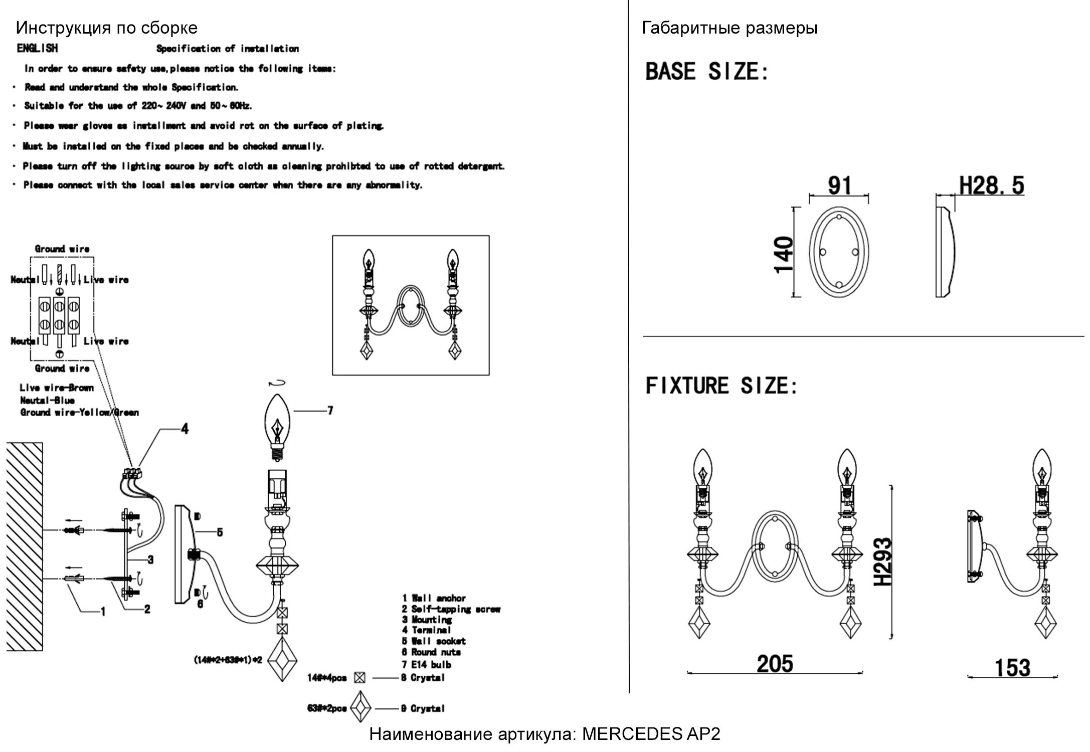 - Материал подвески: Хрусталь