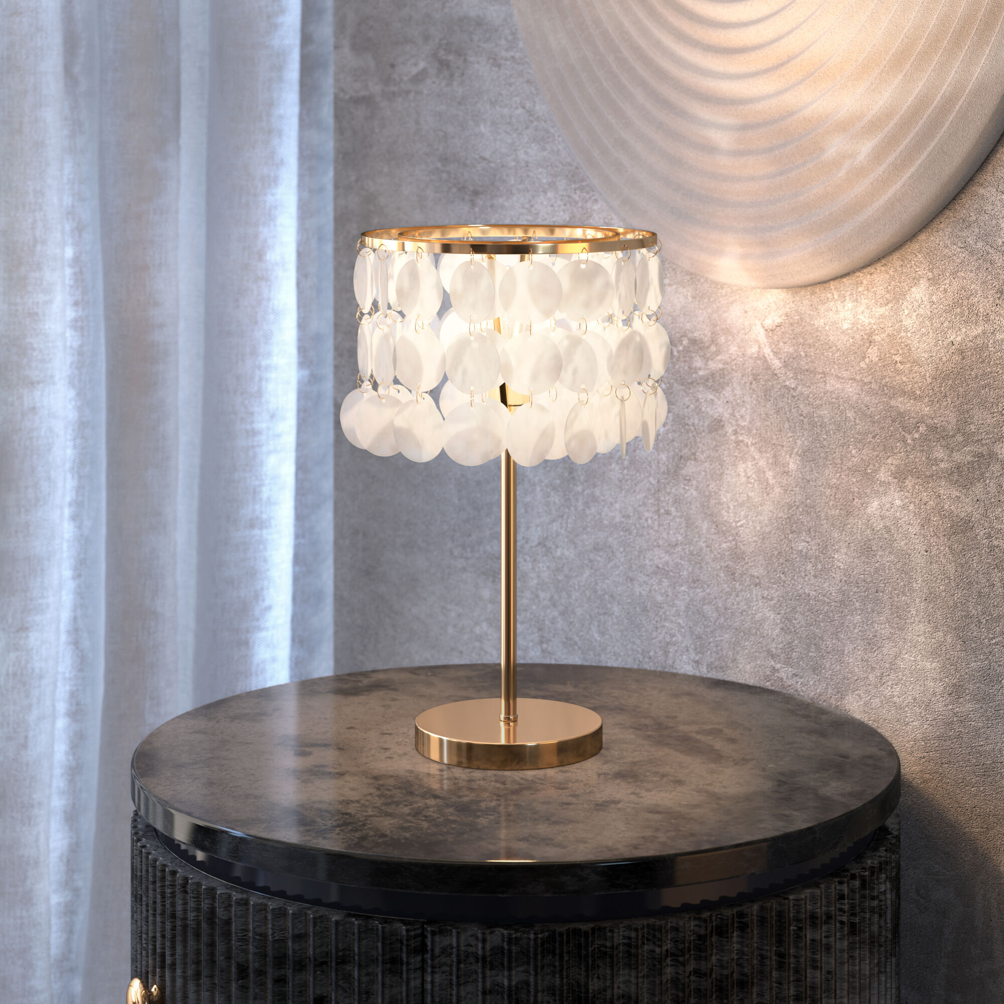 Благодаря перламутровым подвескам настольная лампа создает мягкое рассеянное свечение, подходящее для комфортного чтения книг в вечернее время. Прочный металлический корпус светильника устойчив к механическим воздействиям, а защитное покрытие обеспечивает надежную электроизоляцию и презентабельный внешний вид.