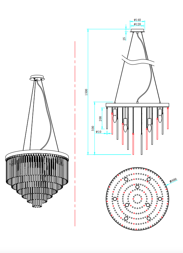 - Диаметр светильника, мм: 600