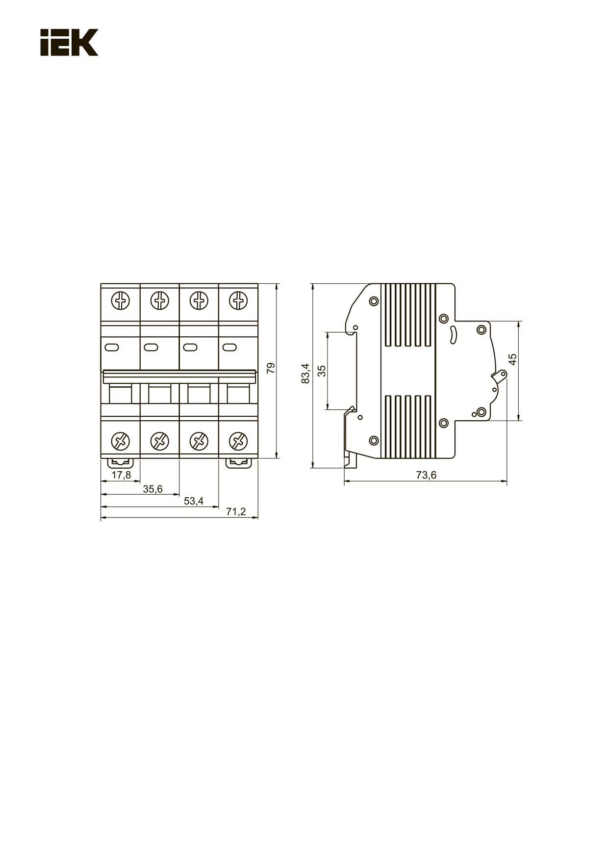 | Номин отключающая способность при коротком замыкании EN 60898 при 400 В, кА | 4.5 |