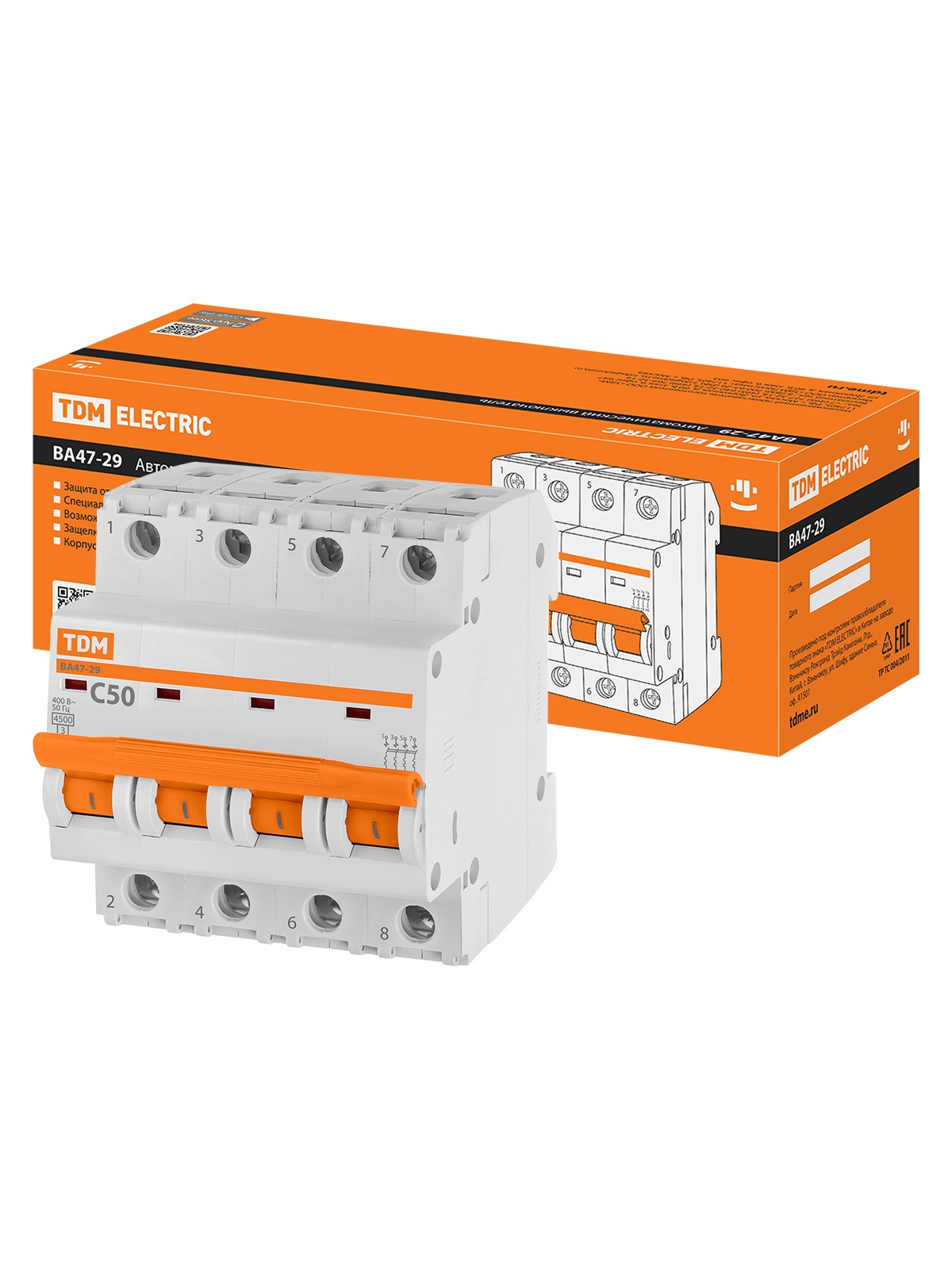 Автоматический выключатель TDM ВА47-29 4Р 50А 4,5кА х-ка С