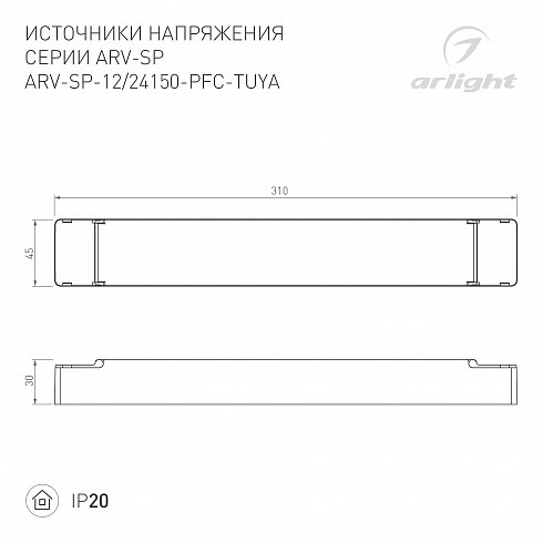 Блок питания 052990(1) ARV-SP-24150-PFC-TUYA-CCT (24V, 6.25A, 150W, WiFi, 2.4G) Arlight