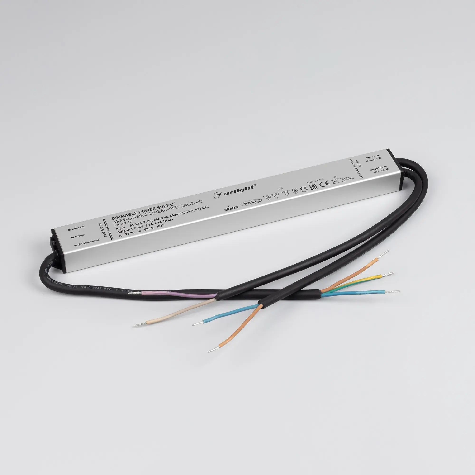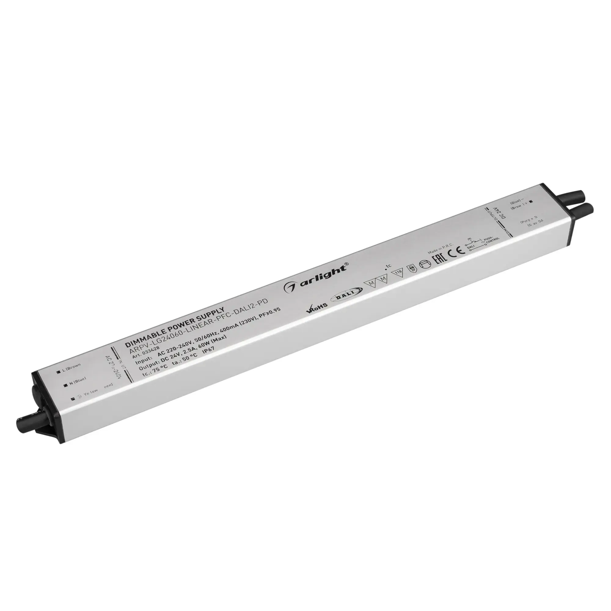Диммируемый по цифровому протоколу DALI-2 источник напряжения с гальванической развязкой применяется для питания различных типов светодиодных изделий. Имеет широкий диапазон диммирования. Металлический линейный корпус обладает хорошим теплоотводом и может применяться для встраивания в алюминиевый профиль или нишу. Высокая степень влагозащиты IP67 позволяет использовать устройство как внутри, так и вне помещений, с соблюдением правил и требований к установке. Встроенный корректор коэффициента мощности позволяет снизить реактивную мощность источника питания, что положительным образом отражается на количестве потребляемой энергии. Высокая эффективность и расширенная гарантия 5 лет - основные преимущества линейки ARPV-LG-LINEAR.