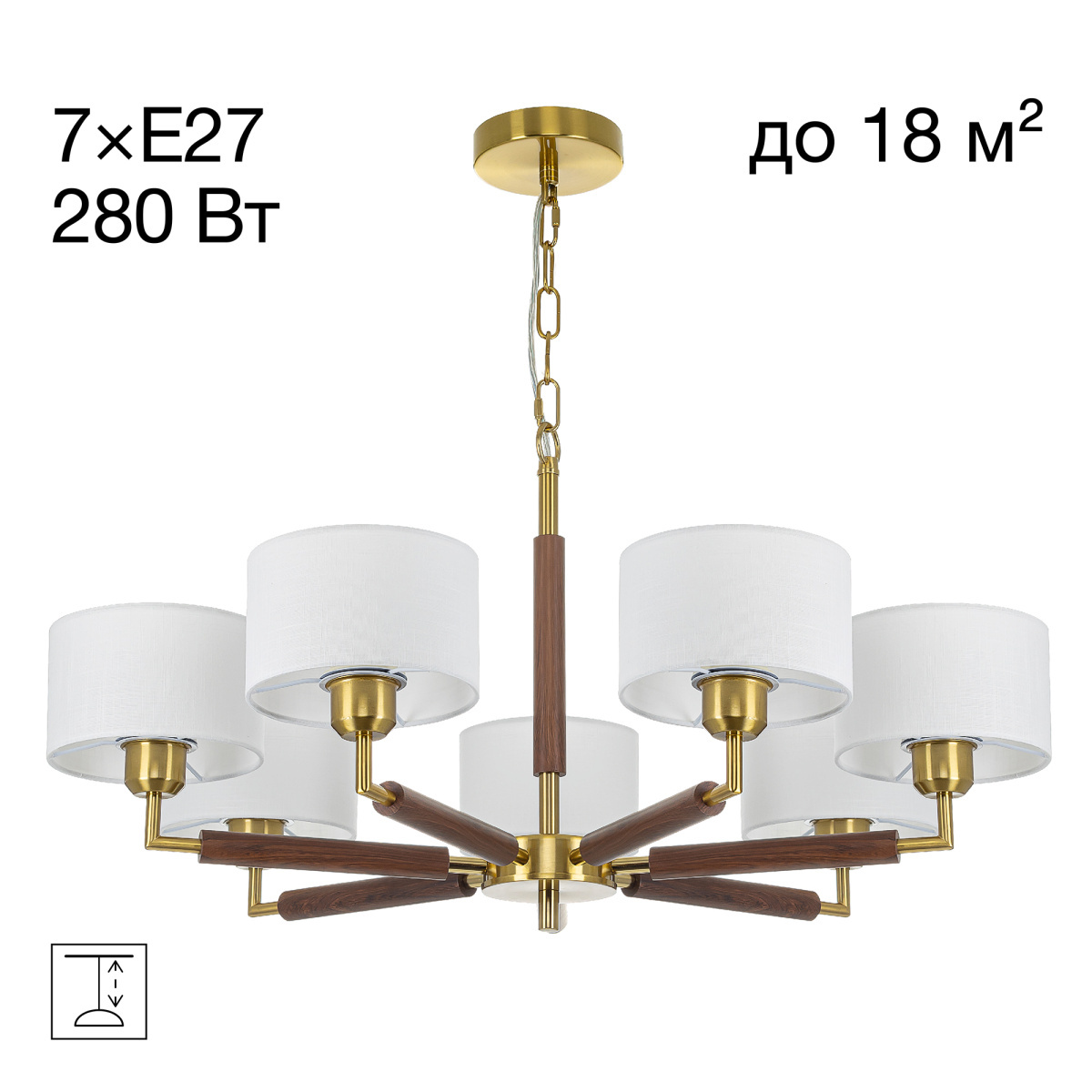 Высота подвеса регулируется, люстру можно подключить к выключателю на одну или две клавиши. В изделии используется 7 лампочек с цоколем Е27, но их нужно будет приобрести отдельно.