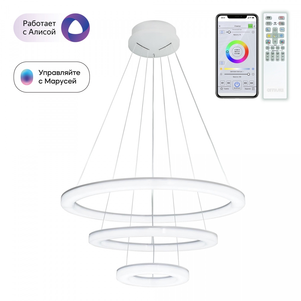 Умная люстра Citilux Электрон Смарт CL710A104S нового поколения с голосовым управлением