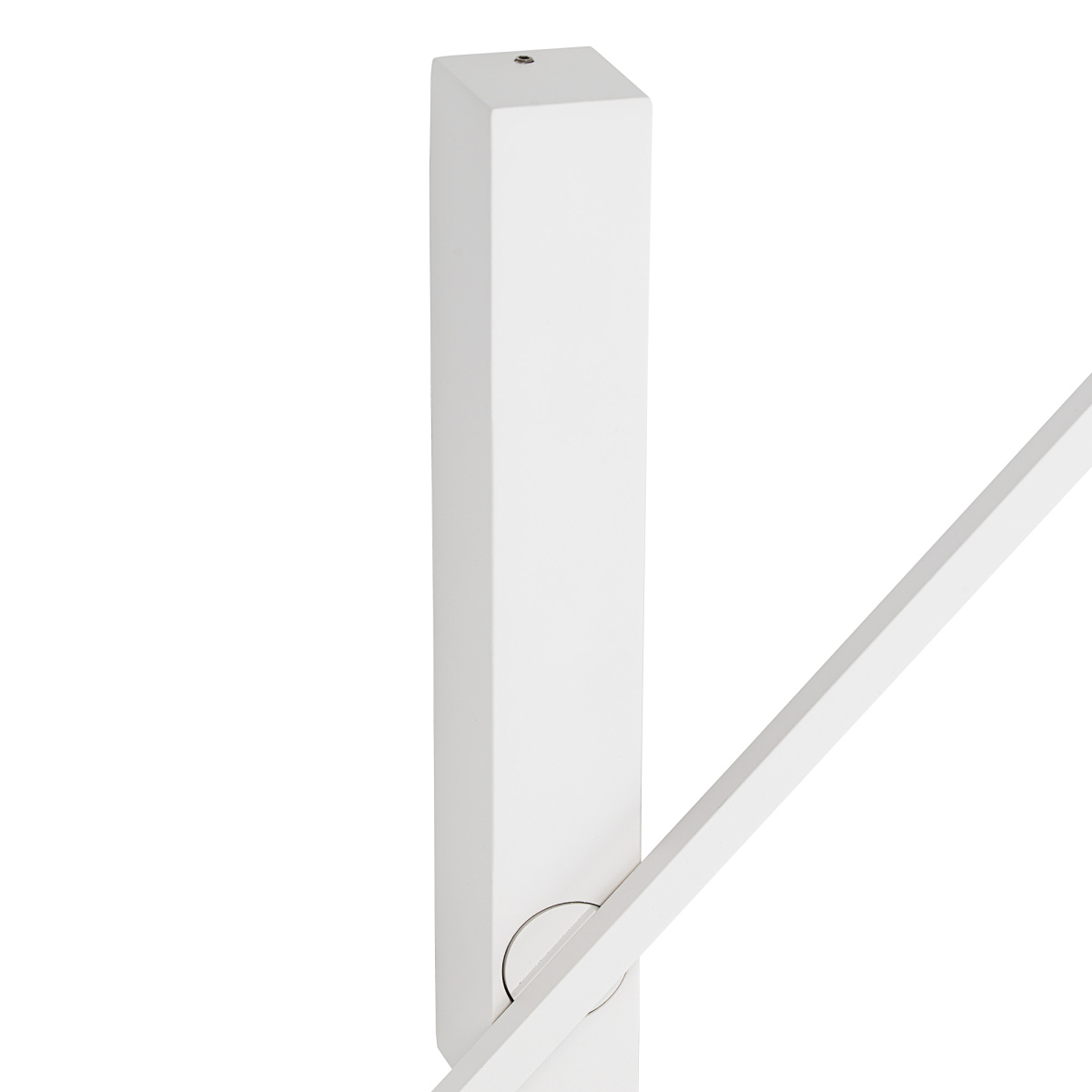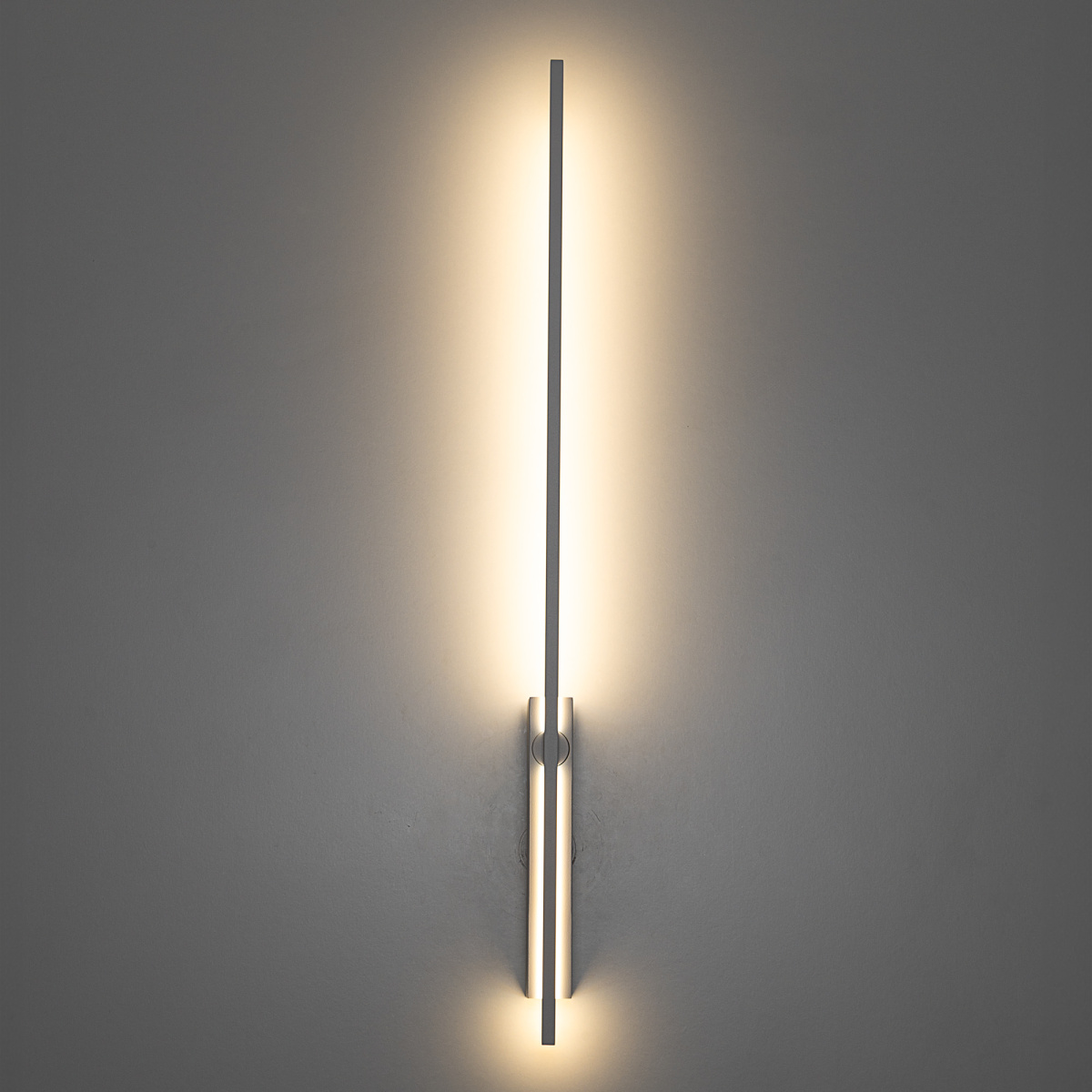 Утонченный корпус изготовлен из металлического сплава, окрашенного матовой белой краской. Линейный светодиодный модуль с рассеивателем из оптического полимера закреплен на поворотном шарнире, который позволяет вращать его на 360°, меняя световой рисунок.