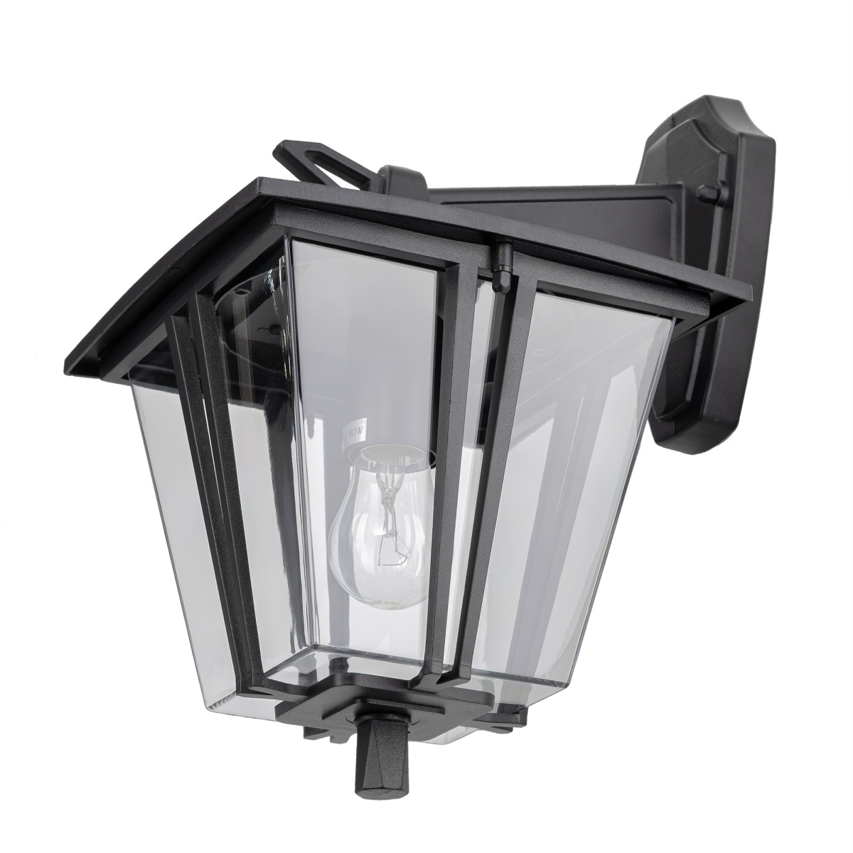 В изделии используется 1 лампа с цоколем Е27, максимальной мощностью для ламп накаливания 40Вт. Рекомендуем устанавливать светодиодные прозрачные филаментные лампы. Светильник с закрытым плафоном, имеет высокую степень защиты — IP54.