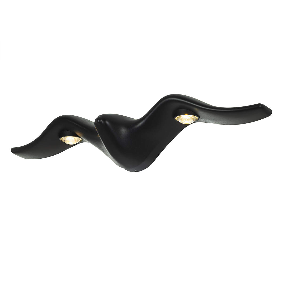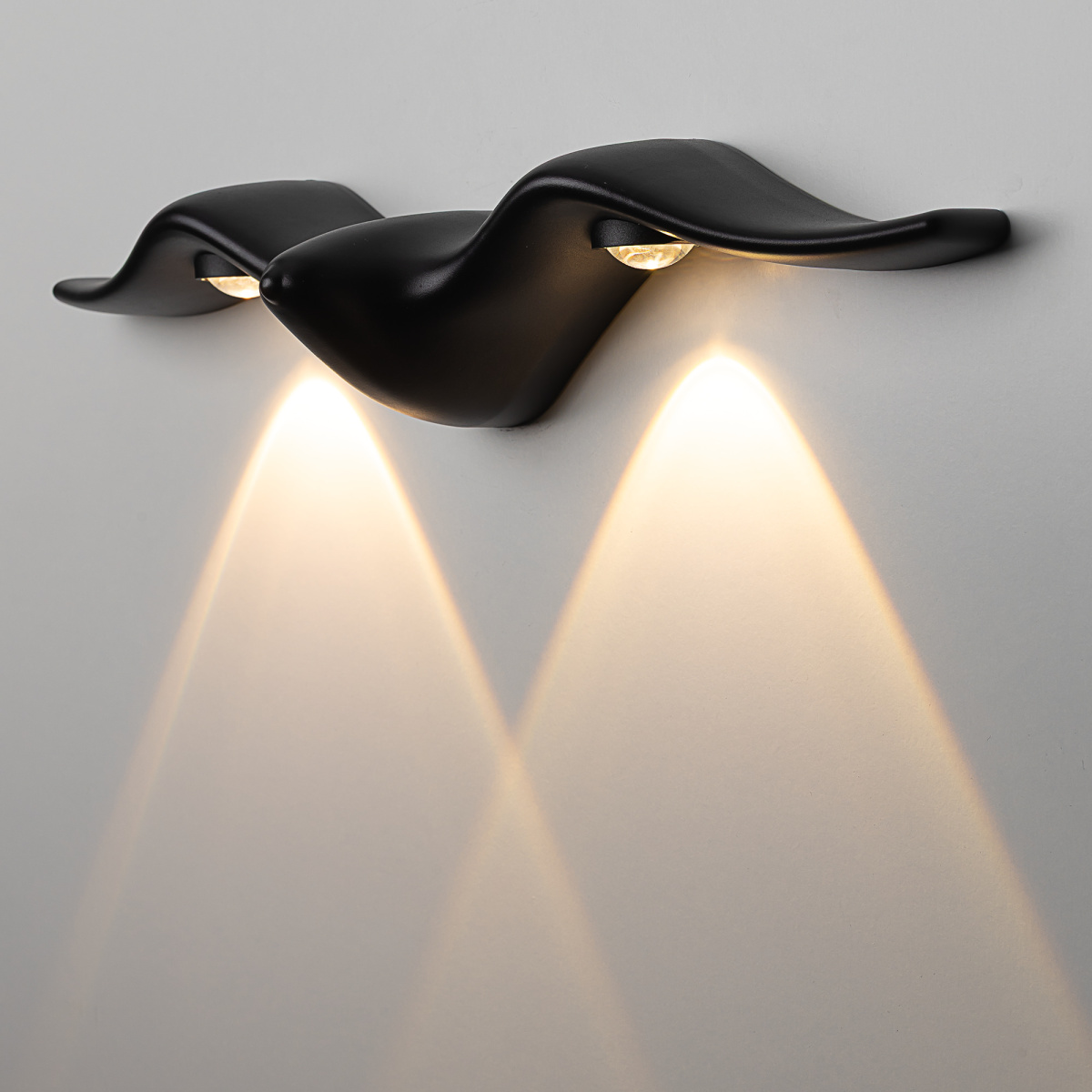 Силуэт светильника напоминает птицу, расправившую крылья. Корпус выполнен из металла классического черного оттенка, с антикоррозийным покрытием, которое гарантирует долговечность даже в условиях суровой русской погоды. Встроенные светодиоды и рассеиватели из оптического полимера спрятаны под «крылья», создавая необычный двойной световой рисунок.