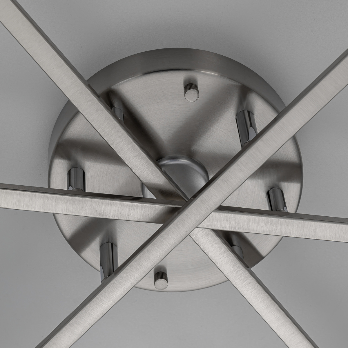 Люстра шестирожковая с круглым основанием, корпус металлический, цвет матовый хром. Плафоны в форме сфероида изготовлены из матового оптического полимера. В каждом плафоне находится уникальный светодиодный модуль, который обеспечивает яркое основное освещение или красочную RGB-подсветку с плавной регулировкой яркости во всех режимах света.