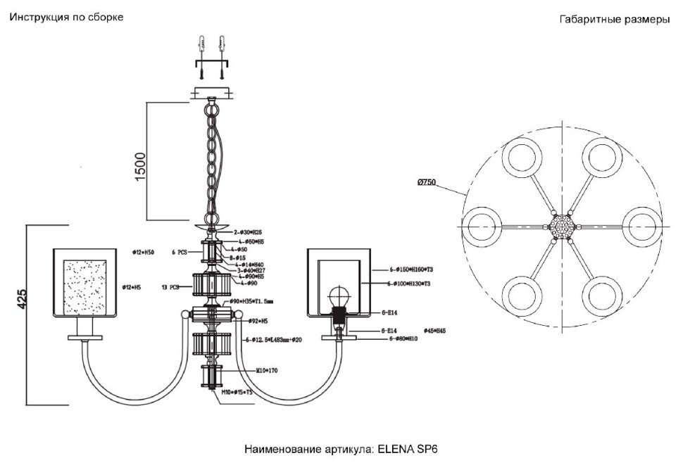 | Количество плафонов/абажуров | 6 |