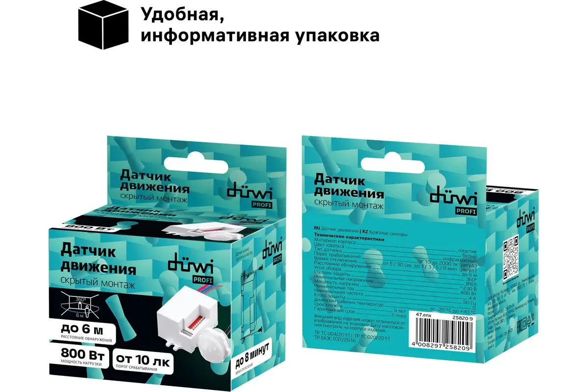 Выносной датчик движения duwi DDV-03 Невидимка 25820 9предназначен для организации автоматических систем освещения. Удобен при использовании в комнатах, где пользование ручным выключателем затруднено.