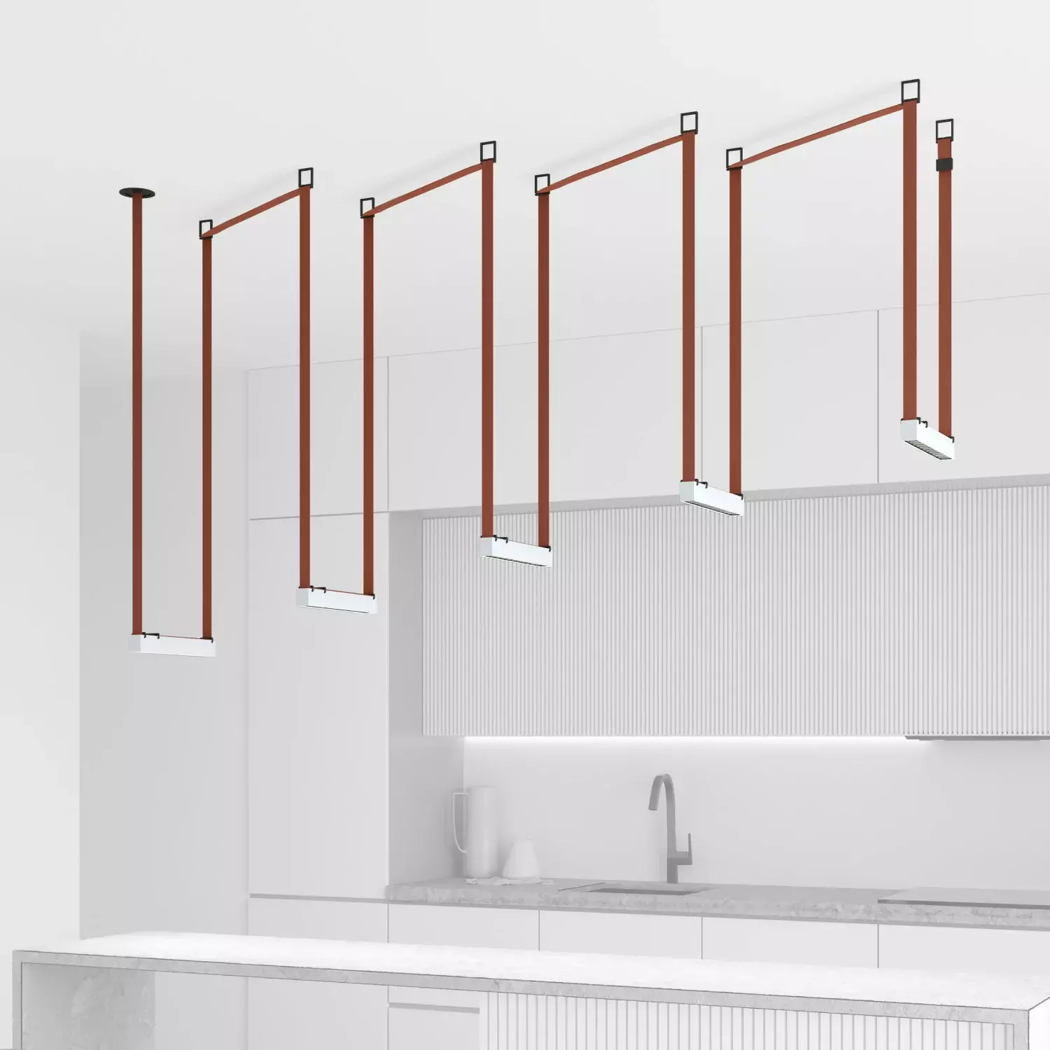 Комплект ременной трековой системы Belty. Предназначен для сборки готового светильника силами покупателя. Поставляется в наборе, состоящем из отдельных комплектующих: элементов ременной системы, блока питания и светильников. Обратите внимание - данный дизайн осветительной системы предполагает выносное размещение блока питания в электрическом щитке/лючке и тд. Необходимо обеспечить подведение низковольтного вывода питания к ременной системе. Если отсутствует возможность обеспечить низковольтный вывод питания, возможно использование модели накладного основания, предусматривающего размещение блока питания внутри себя (артикул TR5510-BK/TR5511-BK). В этом случае изменяется цена набора, а также внешний вид основания.