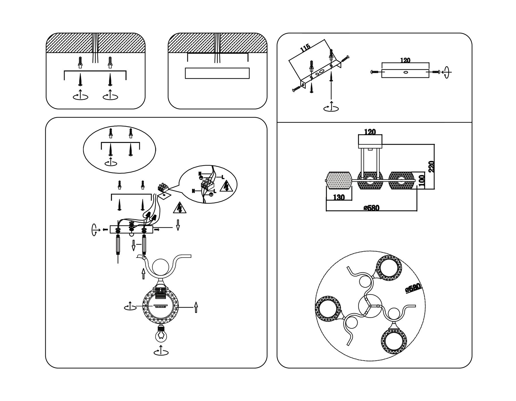 Высота люстры с тросом, мм: 220