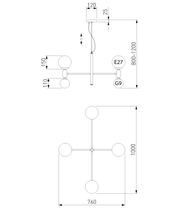 Диаметр потолочной чаши: 120 мм