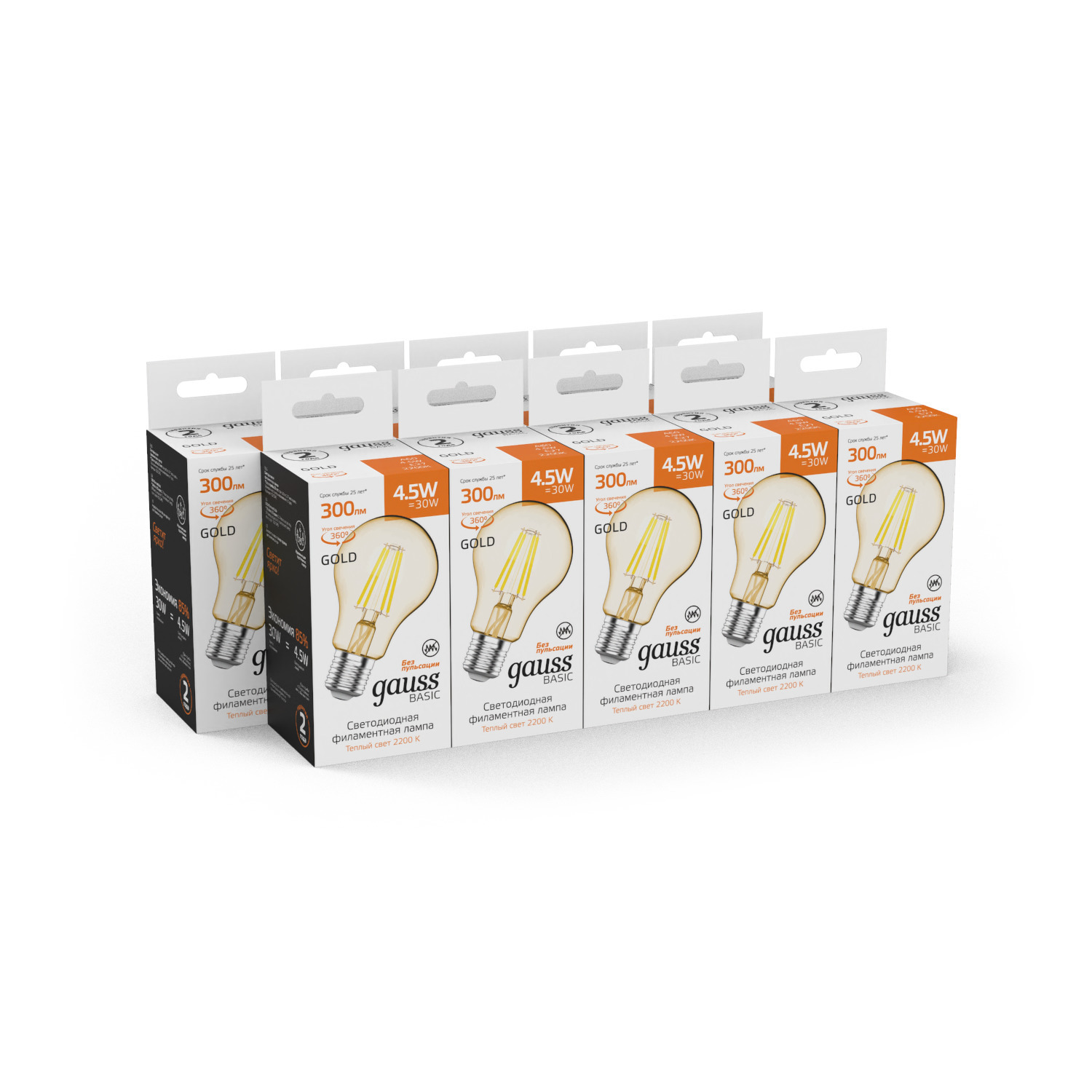 Лампа А60 4,5W 300lm 2200К Е27 golden LED Basic Filament Gauss