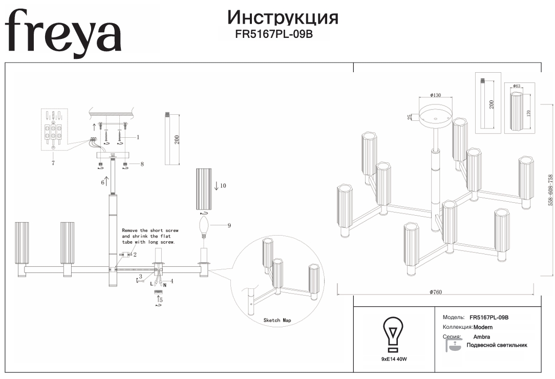 | Кол-во ламп, шт. | 9 |