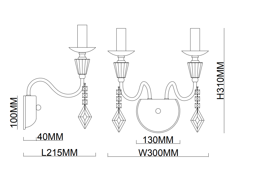 - Ширина светильника, мм: 215