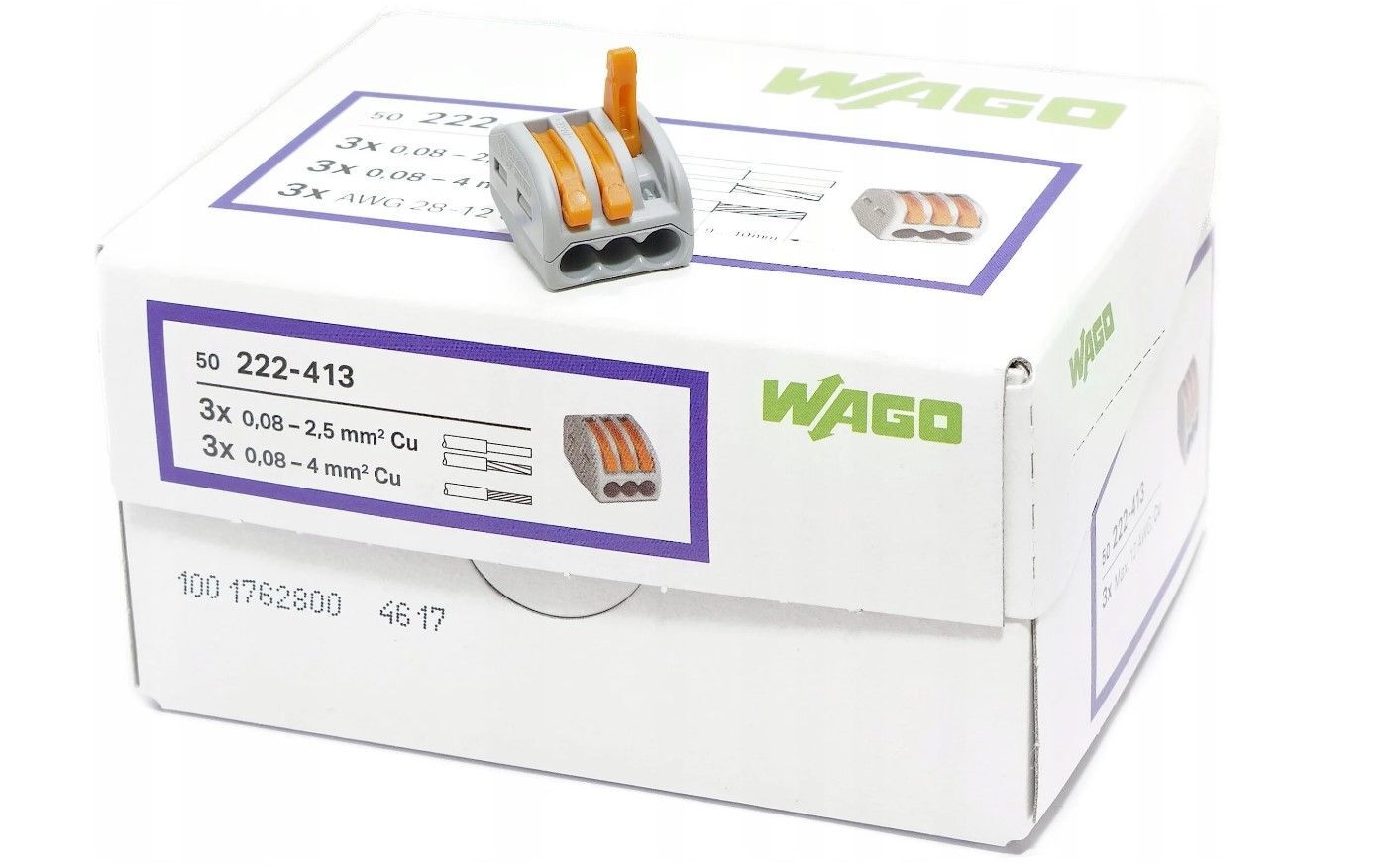 Клемма Wago с зажимами 222-413 original (в упак. 50шт.)