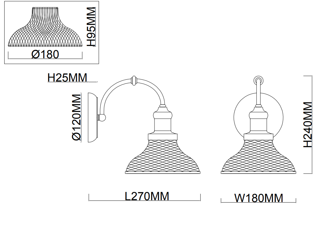 - Ширина светильника, мм: 180