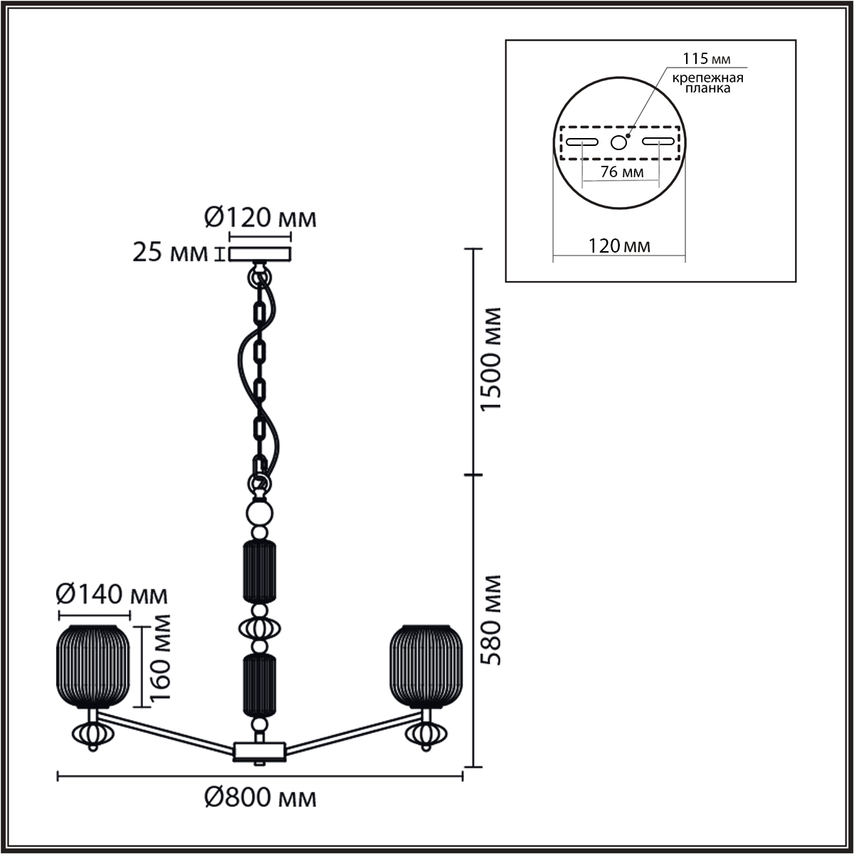 Высота без цепи, мм: 580