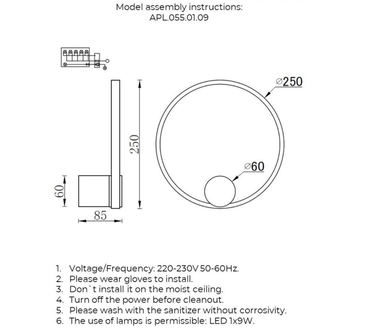 Мощность лампы, W: 9