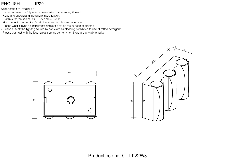 - Количество лампочек: 3