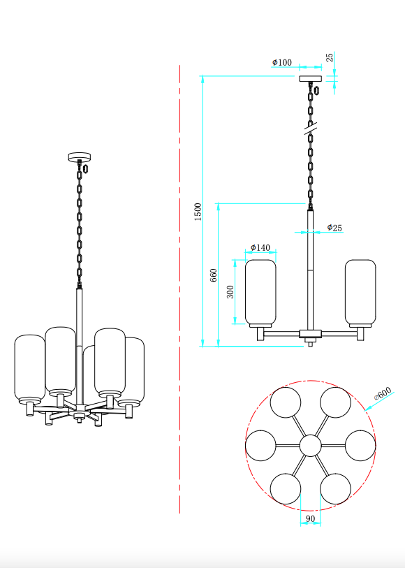 - Диаметр светильника, мм: 600