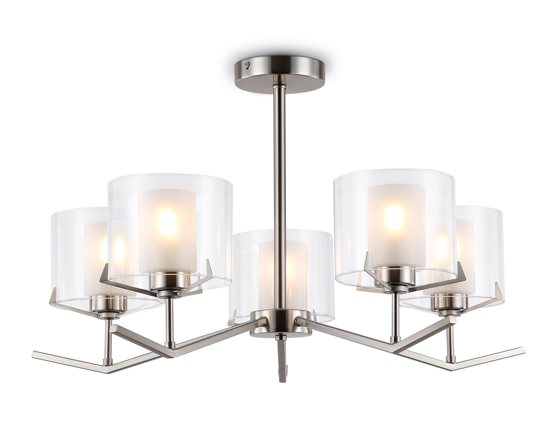 Люстра со стеклянными плафонами на штанге 5*Е14 LH57001/5 SN/FR никель/белый матовый High Light Modern Ambrella